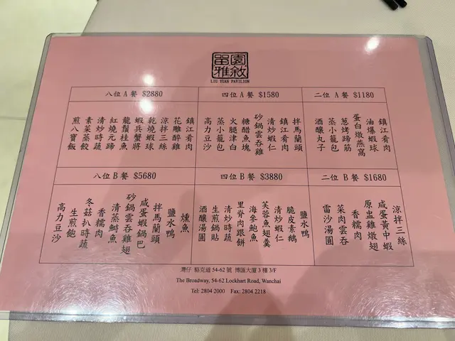 留園雅敘 (湾仔) 网址: https://s.openrice.com/QrLS0g1q000 地址: 香港灣仔駱克道54-62號博匯大廈3樓 电话: +852 28042000