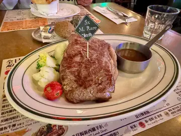 今日同屋企人试咗呢间位于上水西餐厅,晚市套餐相当抵食,$200有找已经有齐餐汤、餐包、主菜同饮品。经典罗宋汤率先上桌,绝非普通餐汤。汤体浓稠丰盈,牛肉、椰菜、红萝卜等材料熬得软腍入味,酸甜度平衡得恰到好处,微辣的尾韵非常开胃,瞬间唤醒了味蕾。主菜方面,美式什扒餐份量惊人,是肉食者的终极挑战。一盘集齐了猪扒、鸡扒、牛扒、香肠及烟肉。猪扒经秘制酱汁腌渍,烧烤后焦香扑鼻;鸡扒肉质异常嫩滑,锁满肉汁;切开香肠时「啵」一声,肉汁四溢。相比之下,肉眼扒餐则展现了对单一食材的极致追求。我们选择了七成熟,厨师的火候控制堪称完美。外层带著诱人的炭烤格纹与焦香,切开后是诱人的粉红色,肉汁被牢牢锁住。无需过多酱汁,仅撒上些许海盐,便能品味到安格斯牛肉的浓郁本味。饱餐一顿后,以心太软作结,用叉子轻轻划开心太软,浓醇的朱古力浆如熔岩般缓缓流出。温度掌控精准,朱浓而不腻。最精彩的莫过于将冰凉的云尼拿雪糕、温热的朱古力浆一同送入口中,冷热交织,口感层次丰富得令人感动。整体而言,环境舒适,服务周到,上菜速度快。以呢个价钱来说,食物质素超出预期,绝对会再encore!值得推荐俾想平平地食个高质西餐嘅朋友。