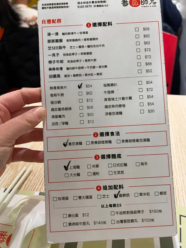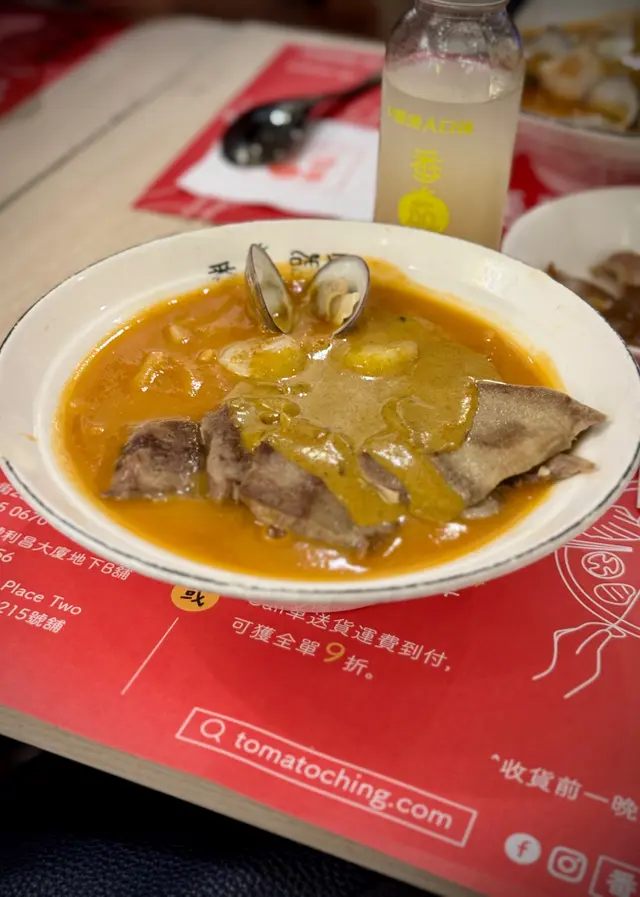 今日來深水埗, 又想下食什麼好?🤔天氣太熱🥵, 都係食湯粉會胃口好一d, 上網見到佢食評幾多like, 就不如來試下, 望下餐牌, 唔食牛🐮的我, 㨂左一個好有趣的名字, 叫豚豚圓圓🐷🐷, 自己用黑色水筆剔自己需要的食物, 我揀左普通蕃茄🍅湯底, 要日式拉麵, 加椰菜, 另外加左只糖心蛋🥚, 見佢有桂園紅棗桑寄生茶, 個名好似幾吸引, 点知好快已經送上, 唔係我想像中的味道, 屬於好淡無乜味😝有点兒失望, 之後送上蕃茄🍅湯拉麵, 其實喜歡🍅的我, 我覺得其實賣相幾吸引, 但蕃茄🍅唔可以叫做一個湯🤣只可以叫左一個汁, 似係撈拉麵多d🤣, 不過食落同拉麵又幾夾, 食件五花腩🐷, 雖然見到係有膏, 不過食落一d都唔油膩👍, 反而幾爽彈, 味道真係幾好😘有驚喜, 之後再食豬頸肉🐷又係好爽彈, 亦係好有肉味👍👍, 但以五花腩🐷為主, 豬🐷頸肉相對比得較少😅, 之後食只糖心蛋🥚, 查實加12元, 都算係幾貴, 不過又想試下, 咬一口, 係真係糖心, 味道幾唔錯😄整體味道唔差, 但以依個價錢, 份量屬於少, 店員服務親切有禮🤩😍, 如果突然想食🍅, 都會再來幫襯😽…查看更多