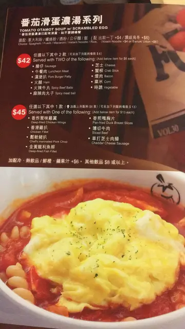 佢有个menu系茄汤底拣𩠌再拣面 仲送只靓靓炒滑蛋🍳因为太好味嘅缘故 我每次都会拣呢味 不停encore