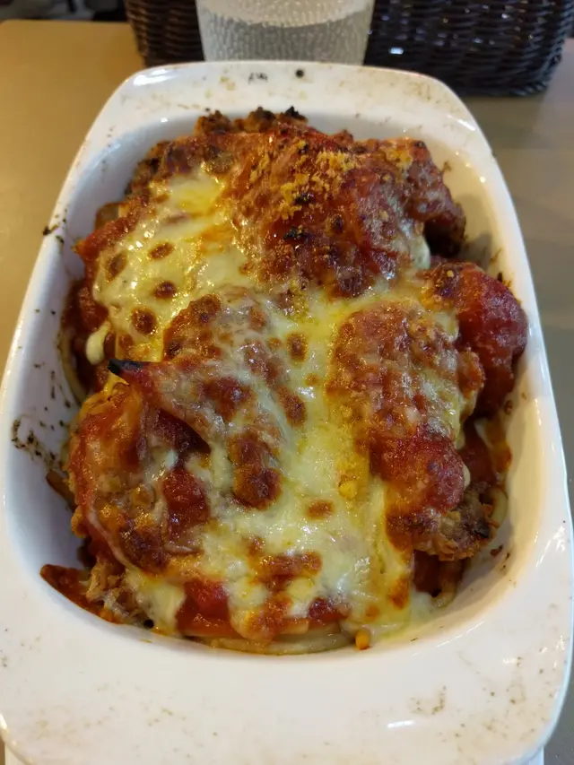 雖然唔係住喺屯門,但係每次黎屯門睇電影都唔捨得去幫襯V city嗰啲貴價食店,反而會嚟V city隔離呢一間隱世係巷仔嘅鋪頭到幫襯返平民食店😊每次嚟到呢度都係必嗌焗鮮茄豬扒飯😋😋😋比起大家樂嗰啲焗豬扒飯,呢度嘅焗豬扒飯雖然賣相就差少少,但係佢嘅茄汁非常之濃郁而且又有啲薑味好有層次,豬扒又係鬆軟可口,每次都食晒㗎
