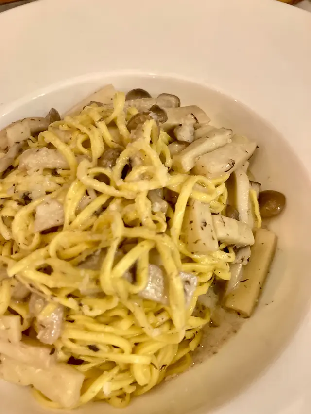 黑松露雜菌手打闊條麵$98: 同樣價錢,闊條麵好食😋多了,醬汁creamy 可口