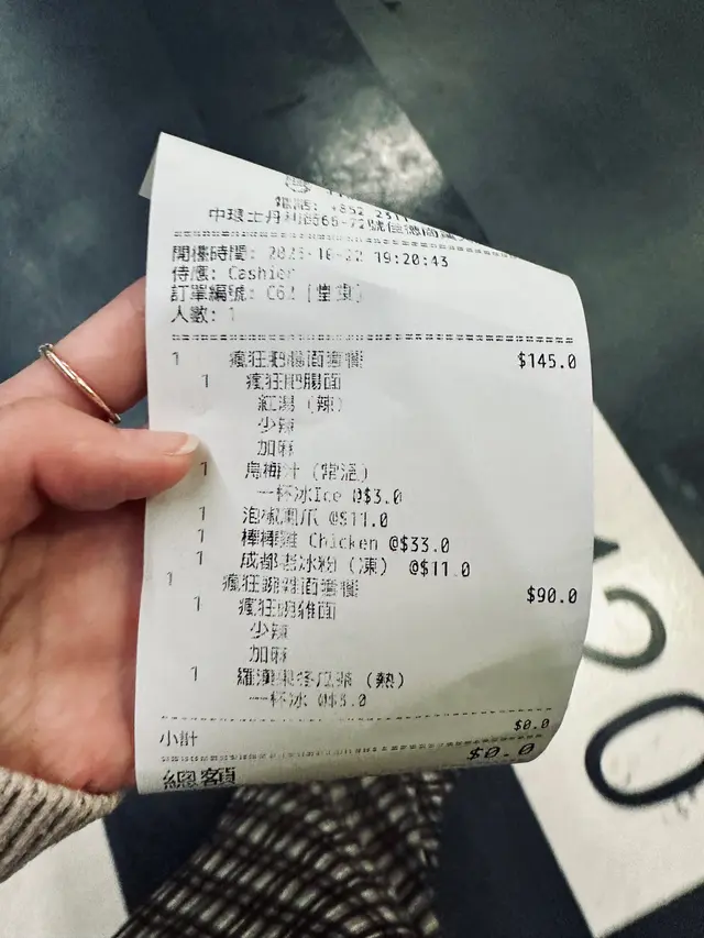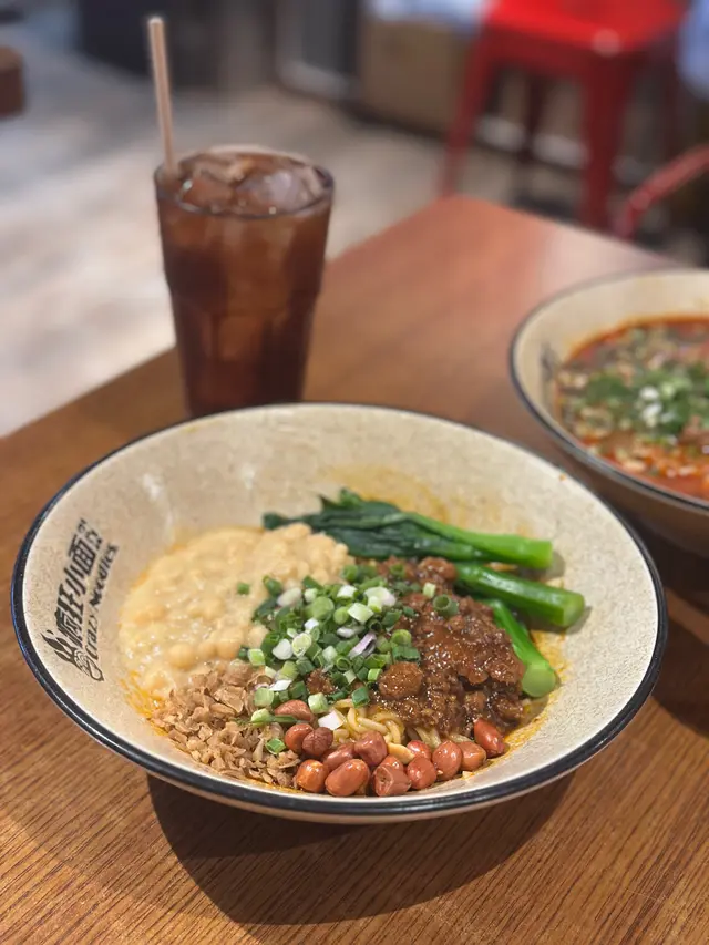 餐厅:疯狂小面地点:中环士丹利街楼上餐馆菜式:川菜餐牌:主打小面(即系传统重庆小面),餐牌基本上就系三款组合既面餐,面+饮品 $87面+饮品+小吃/甜品$98面+饮品+小吃+甜品 $109另设加一。饮品同小吃都可以加钱升级。另外可以再加料。面可以拣干捞面或者汤面,同埋麻度同辣度等。自己剔纸落单。凉拌木耳 (跟餐)小食份量都唔细,爽口木耳加有蒜蓉,伴有蒜片同辣椒,都几辣下。番茄煎蛋牛肉面 首先饮啖番茄汤,汤底超正,带有天然番茄甜味,食到番茄肉。番茄配葱花同芫荽好夹!另有5块超薄切牛肉,非常重卤水味,配番茄汤刚好!仲有三条菜心苗。呢度用新鲜水面,餐牌写明非油炸或挂面,又真系食得出,好健康。d面都唔会话太软身或一pat pat,分量足。我另外加左款料。煎蛋 加$9 另加一煎蛋全熟,皮脆唔干,唔错。乌梅汁 (跟餐) 唔洗加钱饮品有4款,乌梅汁酸酸哋,好开胃。呢度d面都唔错,上菜超快速,果然系中环效率,地点又方便。最欣赏呢度有私隐度既单人座位,适合我呢d速食个饭就返工人士。…查看更多
