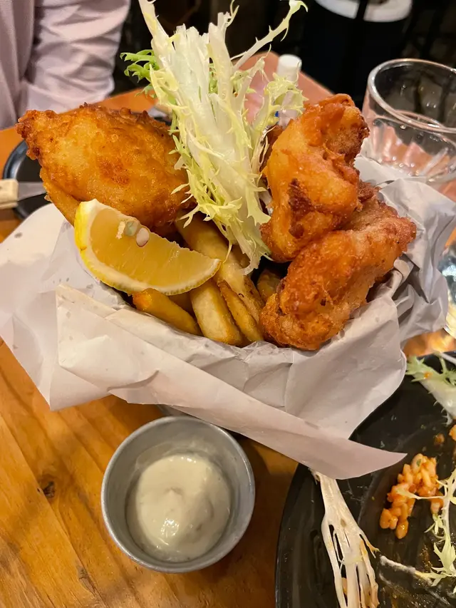 📍瘋鳥, 長沙灣 Cheung Sha Wan平日晚上7 點已經滿座!! 懷舊木系嘅環境幾特別。🐷🥗香茅豬扒沙律 $68豬扒外皮脆 肉質夠軟。配埋沙律菜一齊食其實都幾飽😂😂🐟🍟啤酒炸魚配美國薯條 $78全部岩岩炸起非常夠熱👍🏻 炸魚層炸粉夠薄, 咬落魚塊照juicy 😍 薯條係偏厚身,好有口感。🦐🍚 蕃茄海鮮意大利飯 $86有蝦 青口 魷魚。 蕃茄底炒得好均勻。飯係偏硬身, 個人鐘意軟身多啲😆🍫🍹Oreo mocha smoothie $55超濃有少少苦澀嘅朱古力味。 勁多冰好凍 ,岩晒夏天飲。可能樓底偏矮,所以滿座果時都有少少嘈。整體價錢合理會再黎💪🏻…查看更多