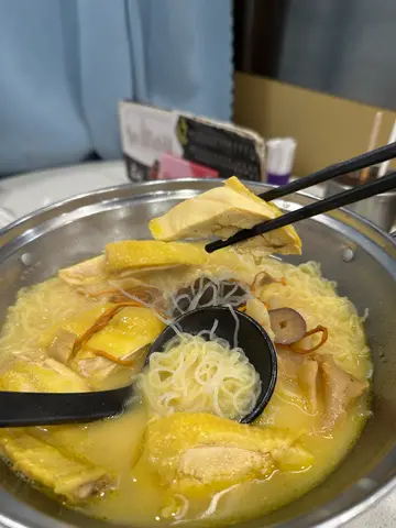 nothing beats a HUGE piping hot bowl of fish maw chicken noodles! the broth was so rich we almost drank it all. definitely coming back soon!!冇嘢比得上一大碗热辣辣嘅花胶鸡米线!个汤好味到差啲饮晒,绝对会返来🍄mushroom fish maw chicken shanghai noodles 姬松茸竹笙花胶鸡上海面the chicken was lean but tender, and the bamboo fungus soaked up all that umami goodness. we also got to choose our noodles. i tried the shanghai noodles which were rlly chewy, just the way i liked it 鸡肉瘦得来够嫩,竹笙索晒啲汤,仲可以自己拣面(米线/宽粉/上海面/饭),我拣咗烟韧嘅上海面,啱晒我口味🐣signature fish maw chicken rice noodles 招牌花胶鸡米线without mushroom but equally SATISFYING朋友几次来都系叫呢个,虽然冇菇,但一样咁正🍘deep fried tofu 金砖豆腐must order!! crispy, salty, peppery- addictively gooood必叫,脆卜卜,椒盐超惹味🍹yuzu tea 热柚子蜜 🍑peach oolong tea 冻蜜桃乌龙冷泡茶price: $50-100 pprating: 9/10revisit? yesss…查看更多
