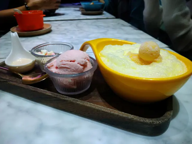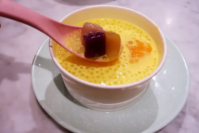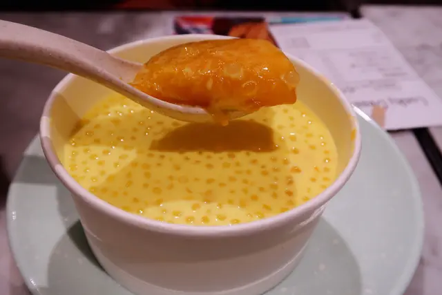 After having dinner with friends, we decided to finish it up with dessert. And thus, we arrived here at Lucky Dessert. It was packed but turn around is fast so we were able to get a table quickly.Lucky Dessert is a local dessert shop serving Chinese desserts. Menu is in English and Chinese and there is no 10% service charge. It's been a long time since we ate here and it appears they have increased with more variety of desserts that seem fancier along with an increase of prices.I ordered this: mango pudding duck with ice cream and marshmallows ($63). There is one that is exactly the same but without marshmallows for $62. I decided to choose the one with the marshamallows and it was served on the side. There is a choice of ice cream and chose strawberry. It was a pretty big portion. The duck was a mango sorbet shaped like a duck. That was the only thing that tasted like mango. The mango pudding itself had no mango taste. It was also freakishly neon yellow in color. There was some froth on top to make it look like a bath tub. It was cute but it didn't taste very good. Just a bland pudding with no mango taste. It was helped along with a bit of condensed milk that was provided on the side.Very expensive prices and the dessert wasn't very good either. It also took forever for my dessert to come and after we asked about it a few times as well. Doubt I'd be back by my own choice.…查看更多