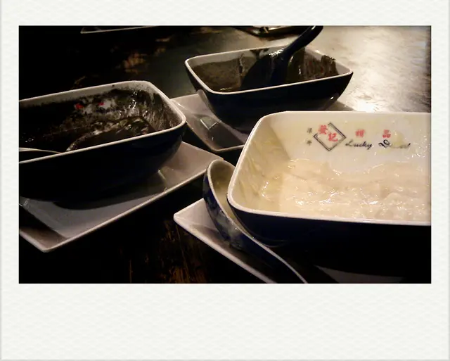 吃過豐富的晚餐,又撐著肚子吃甜品去。這裡的環境尚算闊落,惟晚間人手不足,往往要等一陣子才有店員來服務。我們選了兩款特式甜點,每款價格約 $40,不過味道並沒有帶給我們驚喜。雜果黑珍珠配涼粉條:生果有西瓜、蜜瓜、士多啤梨、芒果,但不算新鮮。伴著芒果汁吃,什麼也是甜的吧。涼粉條比較特別,是涼粉做出來的粗身粉條,口感像條狀的結實 jelly。芝麻馬利餅芝士杯:上層是芝麻跟馬利餅碎,下層是芝士杯。不過芝士味不怎麼突出,旁邊是平平無奇的雲尼拿雪糕,只是稍稍作了裝飾而已。個人來說,情願簡單吃一個木棣布甸呢。查看更多