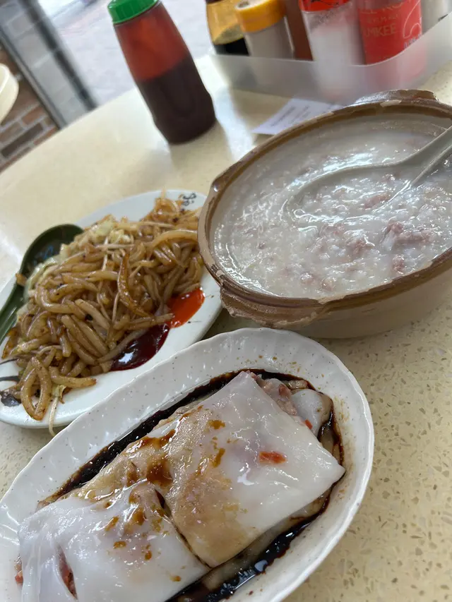 碎牛粥、炒銀針粉,叉燒腸粉