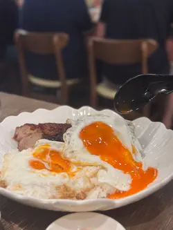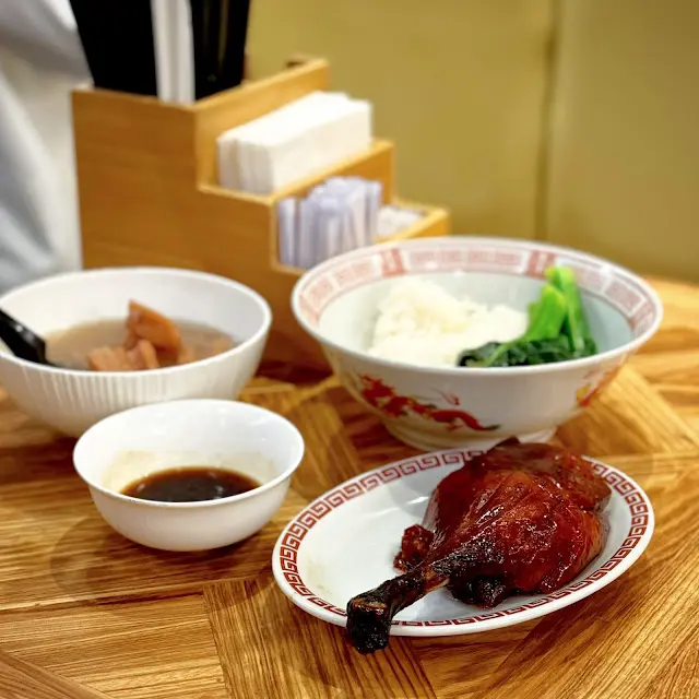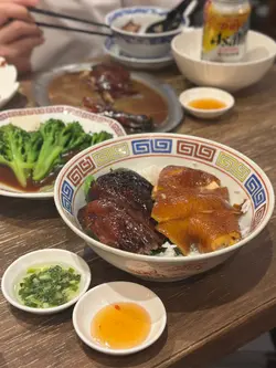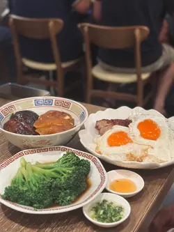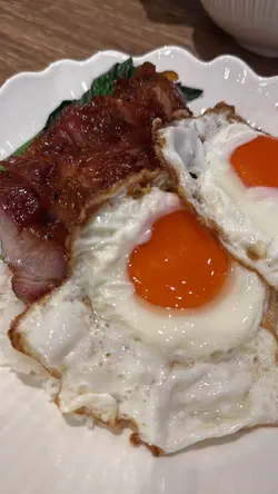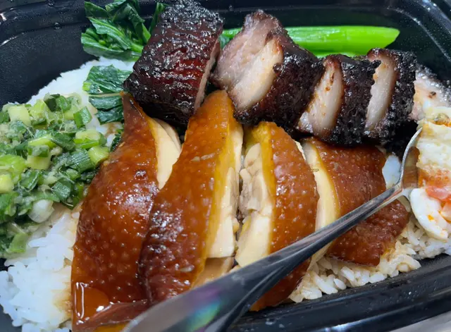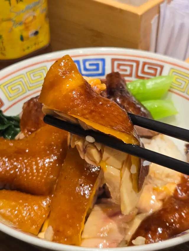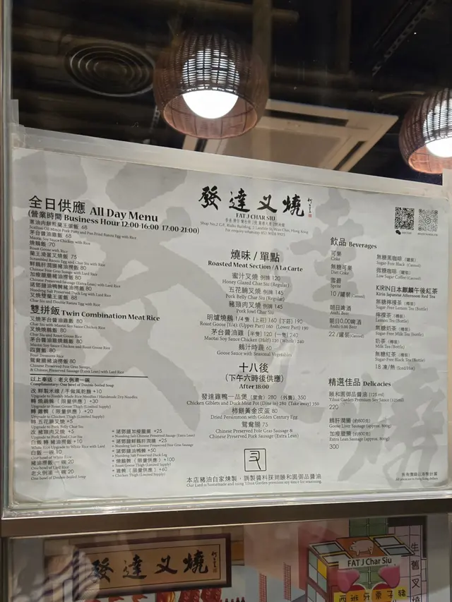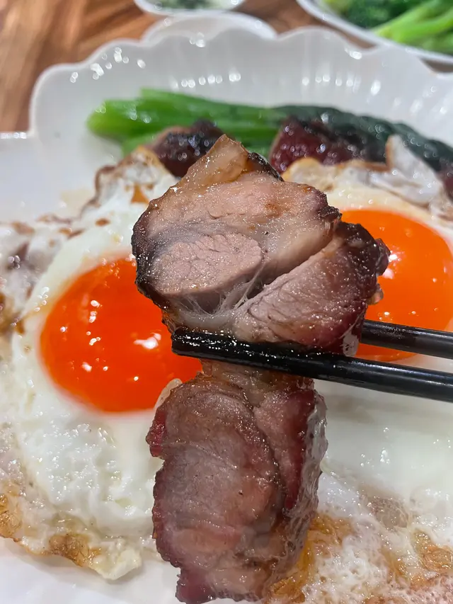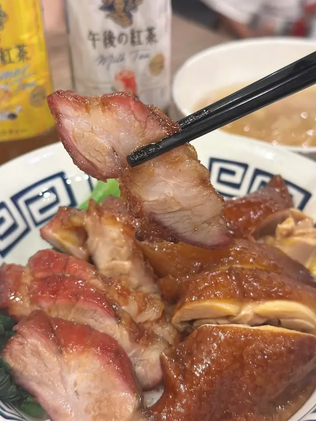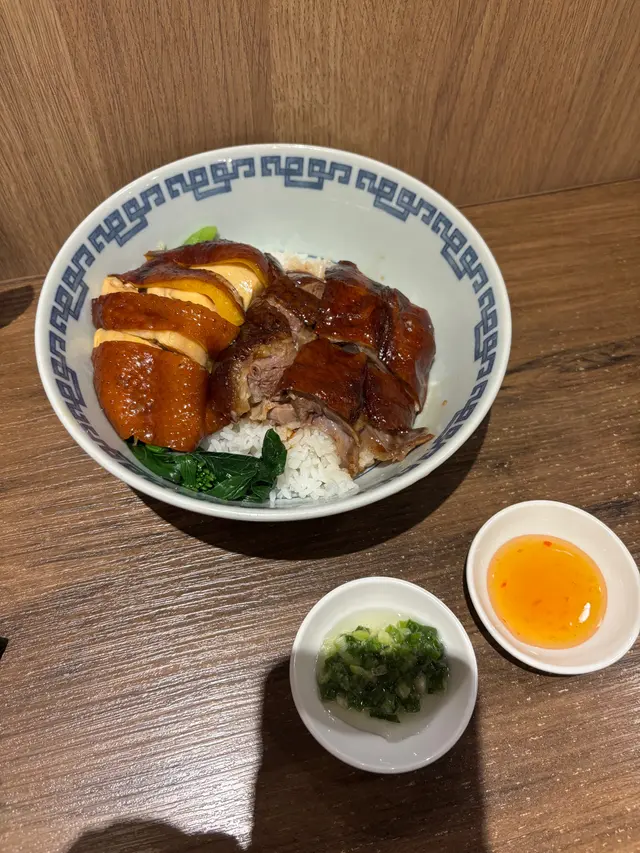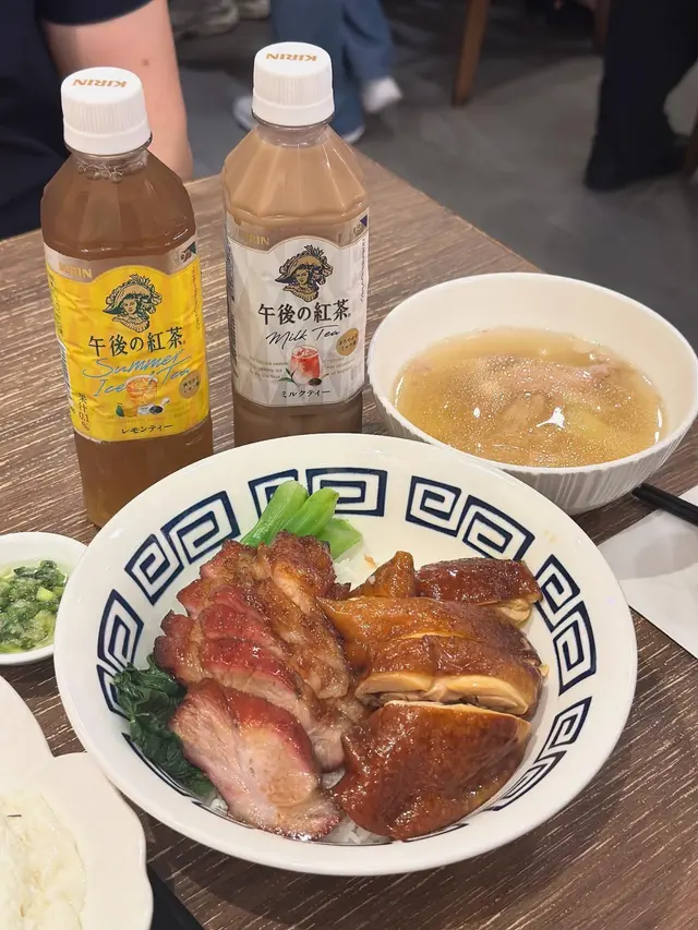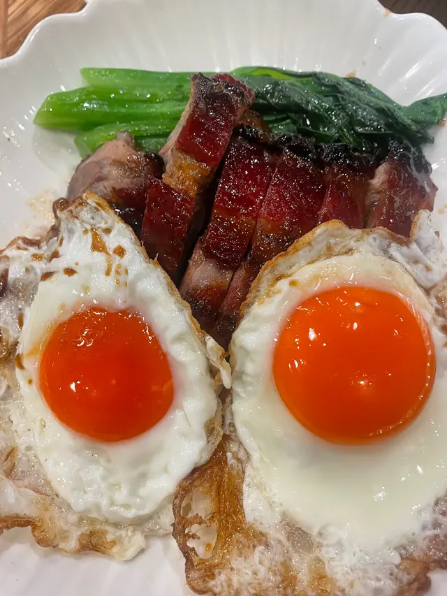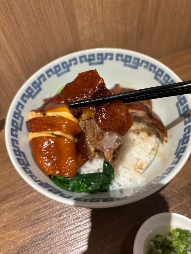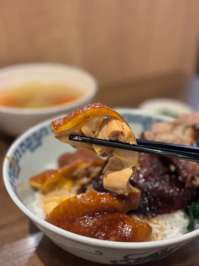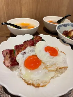 位於灣仔的「發達叉燒」是一間人氣高企的地道燒味店🔥,主打招牌蜜汁叉燒😋,還供應燒鵝、油雞、豬油撈飯等。餐廳裝潢簡潔光猛,設有傳統開放式斬燒味廚房🔪,而店內座位雖然不多,但翻桌率很高,店外經常大排長龍🚶♂️🚶♀️,排隊時見到不少食客專程前來買外賣,亦有熟客報到,氣氛熱鬧💬🥰叉燒雙蘭王蛋飯叉燒雙蘭王蛋飯份量十足🍚,叉燒肥瘦相間🐷,肉質嫩滑,蜜汁味道甘香🍯,脆邊太陽蛋選用蘭王蛋🥚,蛋白煎至微焦脆邊,蛋黃保持完美流心😍,蛋香撲鼻,底下白飯吸盡叉燒醬汁,每一口都香濃惹味🤤‼️茅台醬油雞燒鵝飯茅台醬油雞燒鵝飯同樣份量十足🍱,一上桌就聞到淡淡茅台酒香🍶,茅台醬油雞嫩滑入味🐔,酒香滲透雞肉,層次豐富又不搶味✨;燒鵝🪿皮脆肉香🔥,油脂分佈均勻,入口香濃而不膩🤤。燒味配白飯絕對是王道🍚💯老火例湯今日的例湯是 青紅蘿蔔湯瘦肉湯🥕🐷🥣,湯底清澈不油膩,清甜滋潤😊。…查看更多