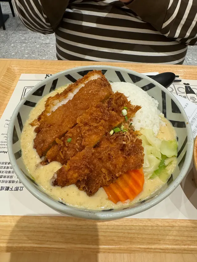 同同事食午餐,佢都係沙嗲王旗下,雖然叫白咖喱公司,但食既野同沙嗲王差不多,但就冇沙嗲王甘多野小食,主打白咖喱為主.沙嗲王就由中學開始食到現在~甘岩撞到3個同事可以一齊放午飯,所以去左試下新開白咖喱.外觀設計同沙嗲王一樣,我地都係叫最常食的類.白咖喱香茅豬扒必叫之一,真心地覺得食甘多間餐廳,佢的白咖喱係最好食,豬肉冇酸臭味,比香茅蓋過哂,豬扒香嫩多汁,微微辣中帶甜,配飯超解饞.蟹粉豆腐鍋..係我每次一定一定要叫!!真心好食到不得了,豆腐滑嫩吸滿蟹粉鮮甜膏汁,配鹹蛋黃,入口綿軟濃郁,微微海鮮香不油膩,超讚!另外個炸魚柳飯,好大塊..冇食過,同事叫~同其他餐廳味道差不多…查看更多