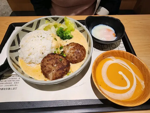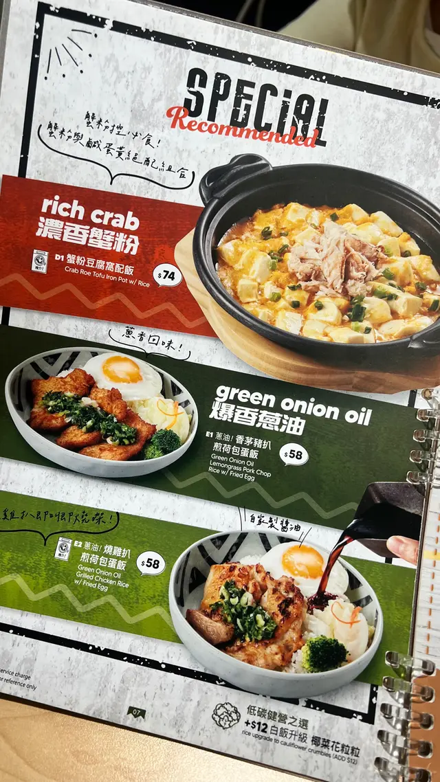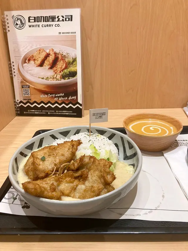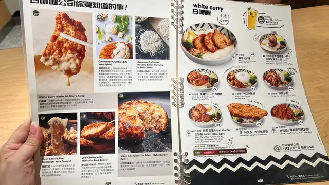 ,感覺舒服,座位空間也十分寬敞這次當然尋回回憶中的味道,繼續支持白咖喱香茅豬扒飯,不過發現餐牌也有不少新意,譬如 有鐵板餐、豆腐鍋,甚至更有keep fit/decarb人士最愛的椰菜花飯落單後不久,就由送餐機械人把食物送上,白咖喱味道依然不變,椰香濃郁,本身小朋友怕辣,結果……一試愛上