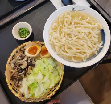 乌冬幼身,但系都好烟韧好食;分量多,好大碗,汤底清淡,唔会味精𩠌default系另上!! 唔系直接浸落碗乌冬到捞埋啲味而且估唔到摆盘都唔hea即使系椰菜都睇得出用心,切到大小适中方便食,盐味啱啱好唔油腻,溏心蛋比有啲拉面店嘅更好食有素食选择(图)$65only冇加一套餐加$15有埋小食(豆腐/椰菜)+饮品(无糖/有糖嘅选择),好抵之余,好多选择好健康坐得舒服唔逼,冇特别限时本身懒得写食评不过见餐厅无论出品定服务都好好,但系生意睇落麻麻,支持一下~