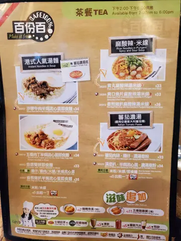 谂住返工前食个早餐,见到百分百就入咗嚟食。其实最主要嘅原因唔系嘢食,叫咗个蕃茄鸡扒意粉转米粉其实都ok,过得去。最想讲系啲态度。11点几上菜,12点搭2左右食晒,饮埋啖柠茶, 其实我都已经夹好晒钱、带定口罩、谂住坐多两三分钟先走。其实我喺呢间舖头成个过程都只系逗留咗七个字(或者八个字)(35-40分钟)。有个金头发冇戴眼镜扎辫嘅阿姐,一路执走晒我枱上面嘅所有嘢同埋一路讲