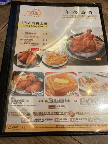 百分百茶餐厅食物水准不俗,炒粉面饭镬气足,干炒牛河油香四溢,米饭粒粒分明;奶茶茶浓奶滑,柠茶酸甜比例恰到好处,确是镇店之宝。唯服务质素稍逊,伙计落单时略显急躁,收桌速度亦待改进。整体而言,以味道取胜的街坊茶记,适合追求效率与风味的食客。顺带一提,下午茶时段套餐性价比颇高,值得一试。…查看更多