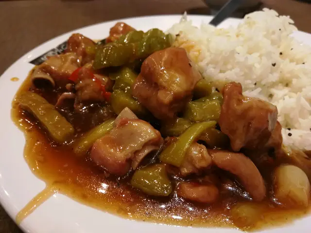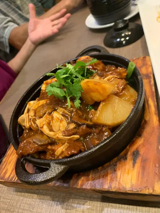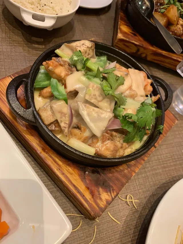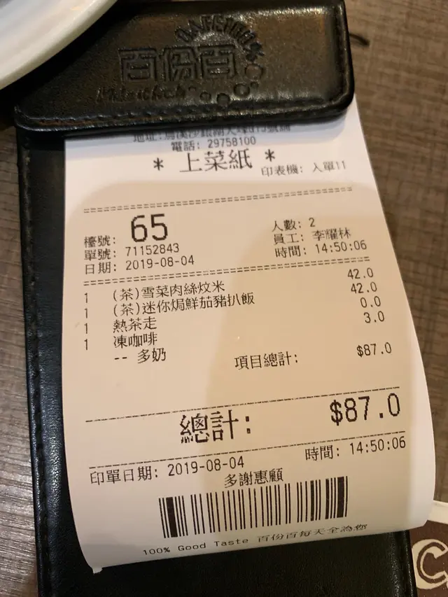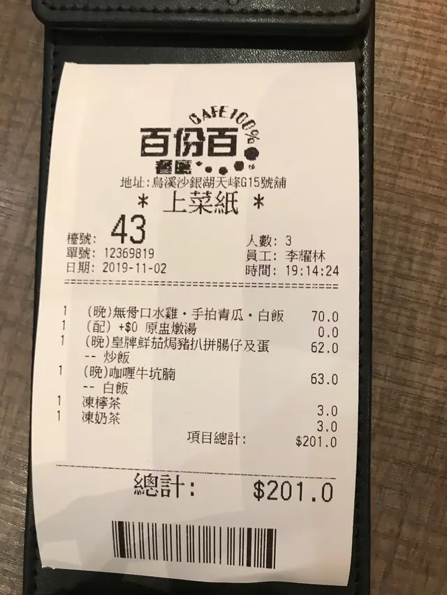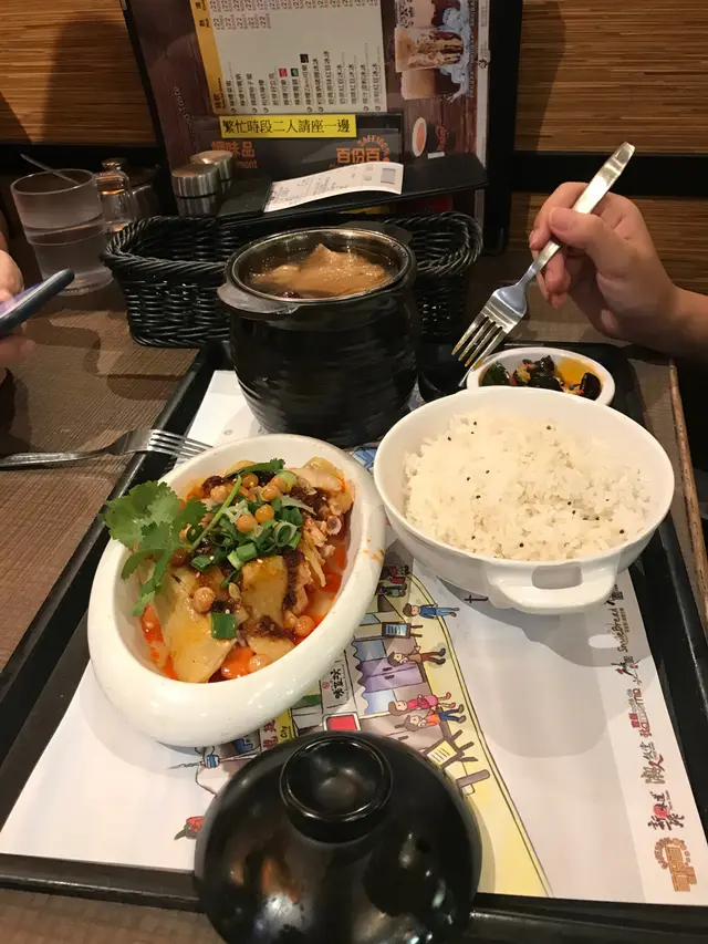 2021/11/14, 想在附近找間餐廳享受個early dinner. 避免多人或者排隊。 17:45 到達烏溪沙站,行2間餐廳,在烏溪沙站的百分百餐廳門外牌看一看,見仍有下午茶,點了白汁焗雞扒飯,因無利賓納,所以配了熱華田。 邊食邊飲,食到尾聲,正飲埋杯飲品,就見極似雞肉的肉絲在底。 相信大家都會⋯⋯有種什麼感受!