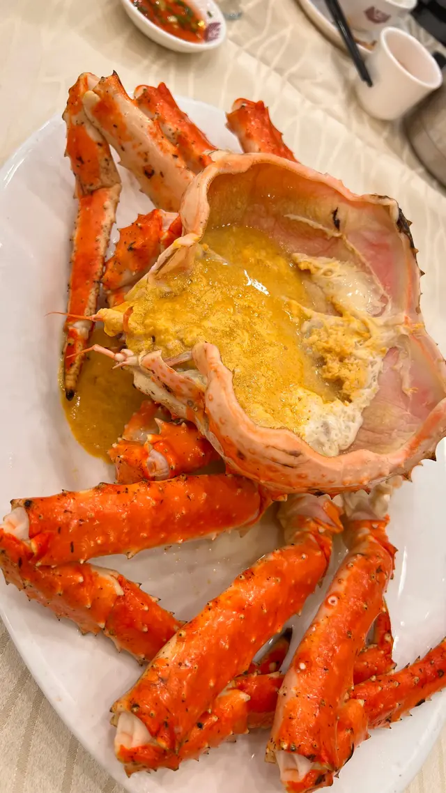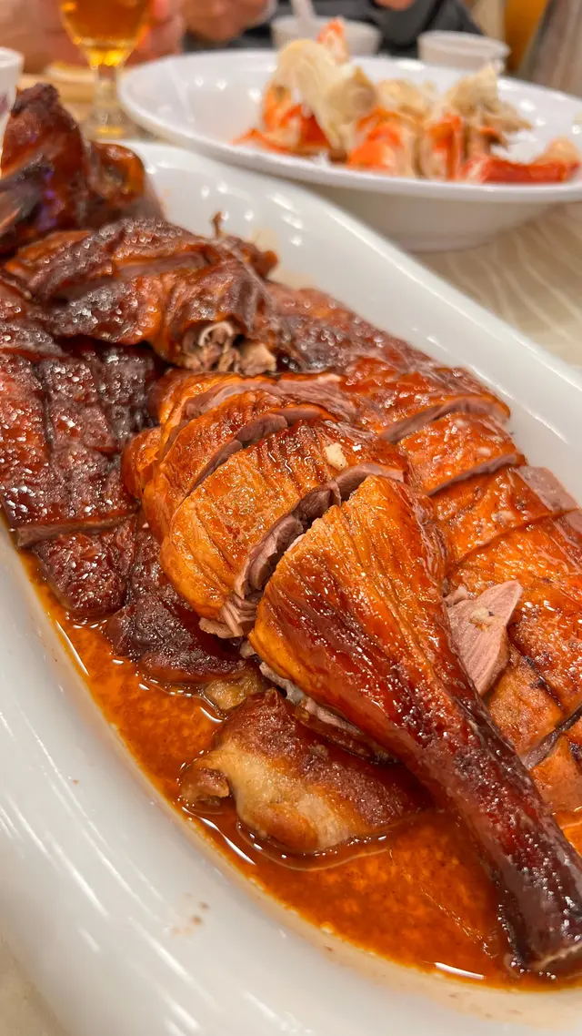 今晚做節食中菜,黎左筲箕灣東大街嘅百好名宴。佢本身係百滙,啱啱裝修完改咗名。佢哋最近出左個阿拉斯加長腳蟹套餐,只係$238/斤,另外想食埋魚同雞嘅話,仲有個$168 套餐可選擇。阿拉斯加長腳蟹套餐 ($923 大約3斤半)酒樓魚缸入邊有好多長腳蟹,隻隻生猛任你揀,我哋6個人揀咗隻3斤幾4斤嘅長腳蟹,上枱時蟹身色澤鮮艷,蟹殼光滑,十分新鮮,金黃色嘅蟹膏多到好似瀑布咁滿瀉,撈飯食鮮味無窮。蟹腳肉質結實彈牙,原汁原味,汁多鮮甜。至尊燒鵝 ($138半隻)燒鵝肉質嫩滑,幾乎没有任何肥膏,每啖入口咬着燒得香脆嘅外皮,夾雜住香濃軟腍嘅鵝肉,加上甜酸醬,味道實在無可挑剔😋…查看更多
