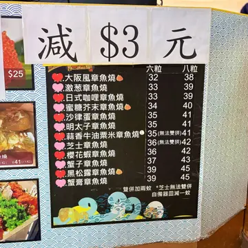 环境简约热闹📸空间虽小,服务快捷,适合扫街或外带。😊与「真‧章鱼无双」同属一脉,质素稳定,吸引不少食客。🐙 原味章鱼小丸子(HK$29/6粒)|外脆内嫩原味章鱼小丸子卖相金黄诱人,外层裹上柴鱼片与沙律酱,香气扑鼻。🍡每粒内藏两粒章鱼,入口外脆内软,章鱼鲜甜Q弹,搭配经典酱汁,甜咸平衡,令人回味。😋面糊厚薄适中,烧得均匀,无油腻感。份量适中,6粒适合1-2人分享,HK$29的价格在旺角极具竞争力,性价比高。🍴 其他口味选择除原味外,餐厅提供多款创意口味如明太子、黑松露及蜜糖芥末(约HK$30-56/6粒),可选双拼(约HK$42/6粒),增添趣味。明太子款浓郁咸香,与原味相比更具层次,惟价格稍高,适合尝鲜。🏙️ 环境与性价比百味章鱼位于旺角中心,地点便利,适合扫街一族,惟堂食空间狭窄,多以外卖为主。📍店员态度友善,制作过程干净衞生。人均约HK$30-60,原味小丸子以HK$29带来高质享受,性价比极高。即使其他口味价格略高,食材新鲜与即叫即制的用心仍值回票价。百味章鱼以地道日式风味与亲民价格,成为旺角必试小食,值得一试!🌟