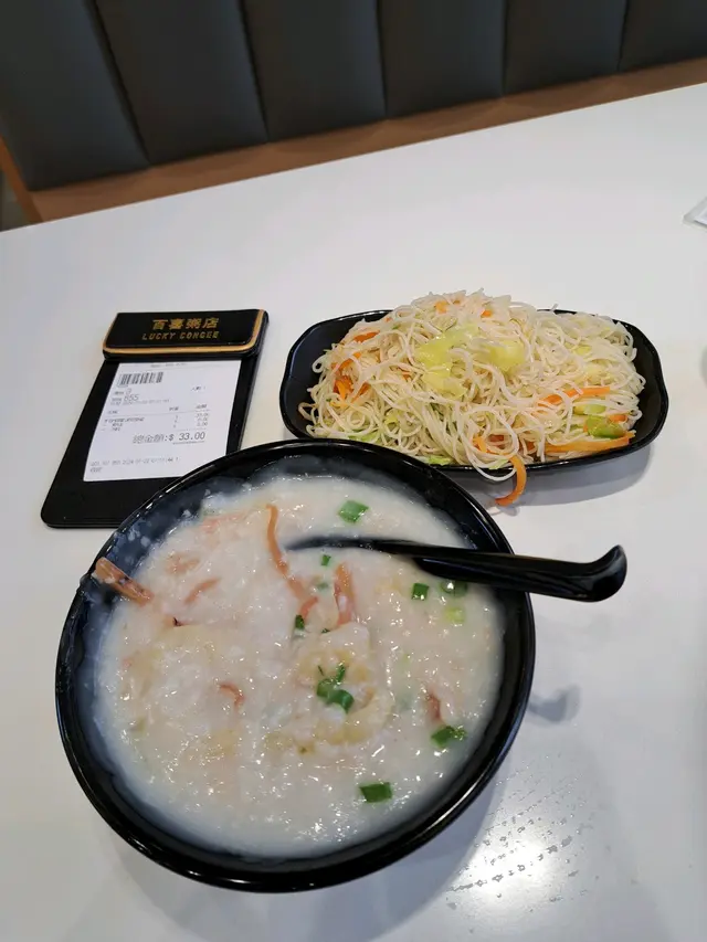 今晚天氣涼涼的,想食些暖笠笠的食物,但又怕食太飽,於是很想食粥。幸好,百喜粥店開店開到晚上。粥店晚上人流不太多,所以不用排隊。我點了炸兩和生滾魚腩粥。炸兩是即叫即做的,內裏的油炸鬼仍是脆口,沒有入油。外面的腸粉亦不會太厚,滑滑的包裹着脆脆的油炸鬼,口感很好。自行在加上甜醬和麻醬,更加好味。至於生滾魚腩粥,有多舊魚腩。魚腩沒有過火,但欠缺底味。如果先行醃一下會更好。粥底加了薑絲,所以不會覺得腥。至於粥底方面,略嫌不夠棉滑。但價錢實惠,不妨試試。…查看更多