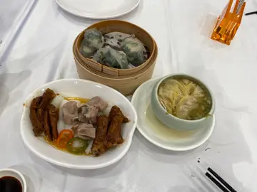 煎薄撑好薄好香脆,食起上嚟又好坚韧。排骨凤爪肠粉系一碟𩠌三种享受,可以同时食到肠粉、排骨及凤爪。菜苗饺好大粒,好饱满,里面好多菜。灌汤饺好足料,个汤漫住一个大饺子,个饺子里面有粒好细既鲍鱼仔,真系好有惊喜,整体都几好食。