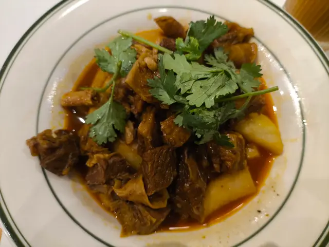食完粥第二站就嚟到位於安寧路上既百姓人家,主打川菜,都有唔少街坊幫襯。午餐時份到店,找了張卡位坐低睇下個餐牌,上次食咗個小炒牛肉,香辣兼備,回味無窮,今次就試下佢呢款新菜式紅燒牛肉飯,即係牛腩飯,$55蚊,份量都算足夠,大大碗白飯,牛腩切得比較細舊,味道就正常,配料仲有薯仔,我不好食,印象深刻就係佢煮出嚟個汁,帶少少藥材香,十分好餸飯。[米饭]口味:🥚🥚🥚[薄荷]环境:🥚🥚🥚[服务铃]服务:🥚🥚🥚🥚[糖果]性价比:🥚🥚🥚…查看更多