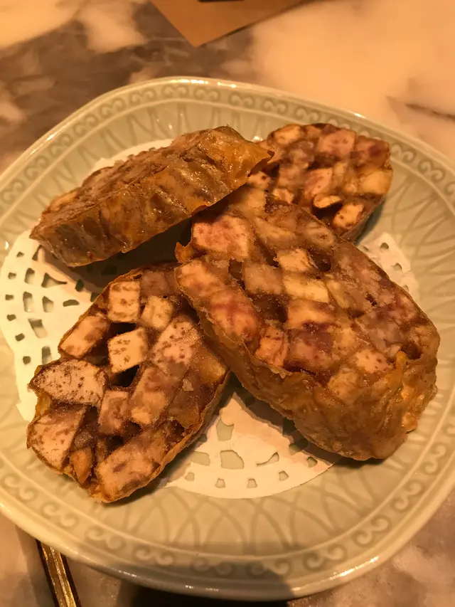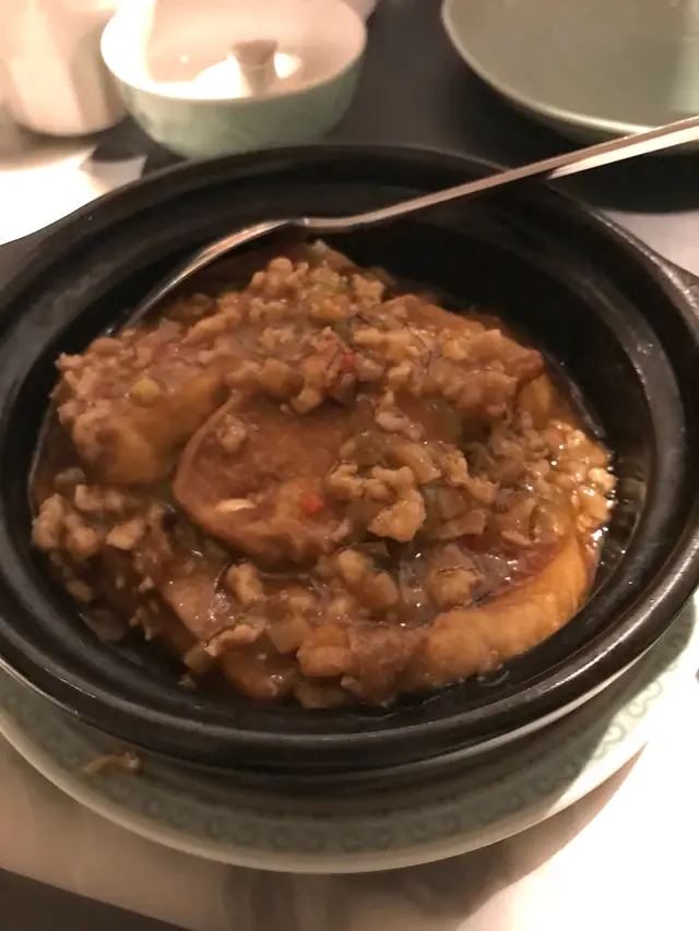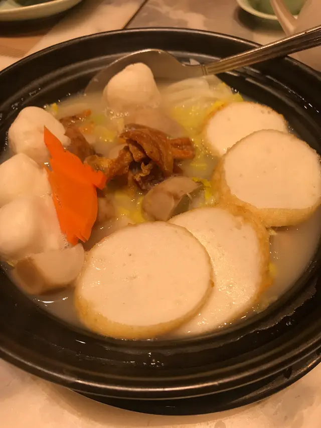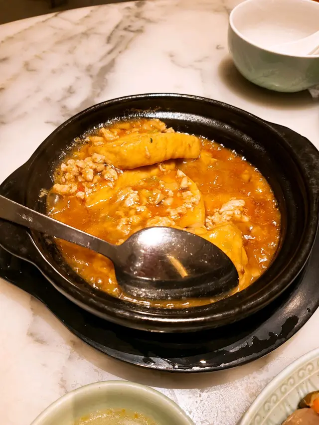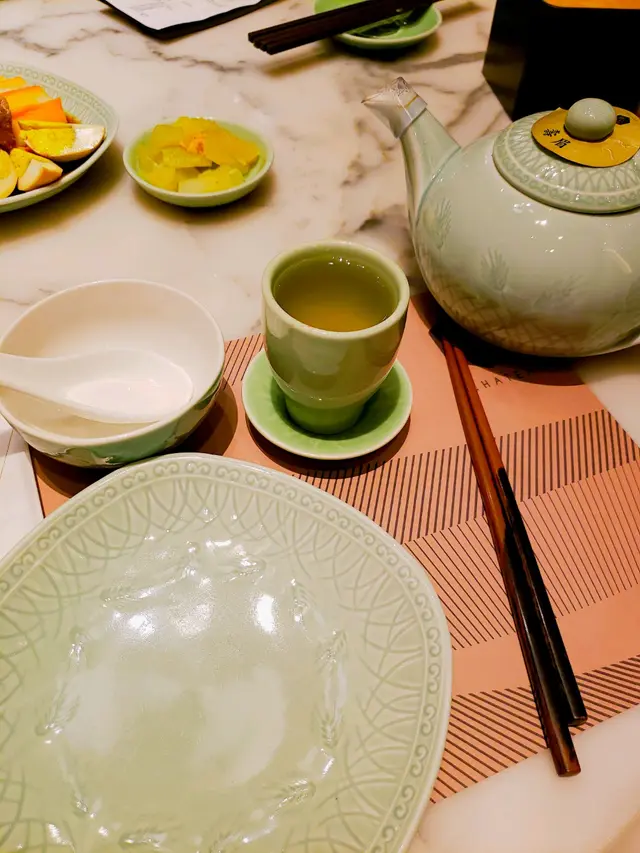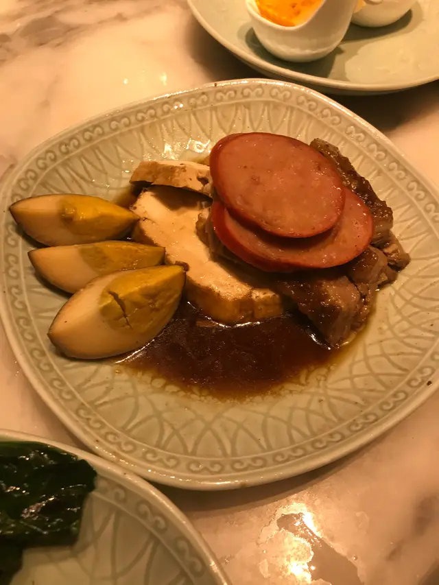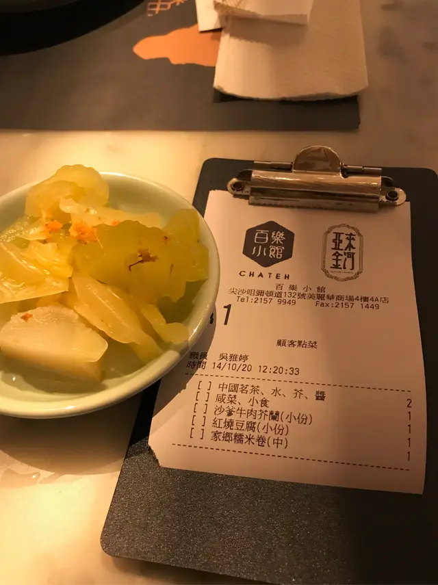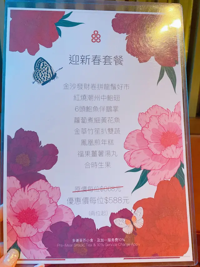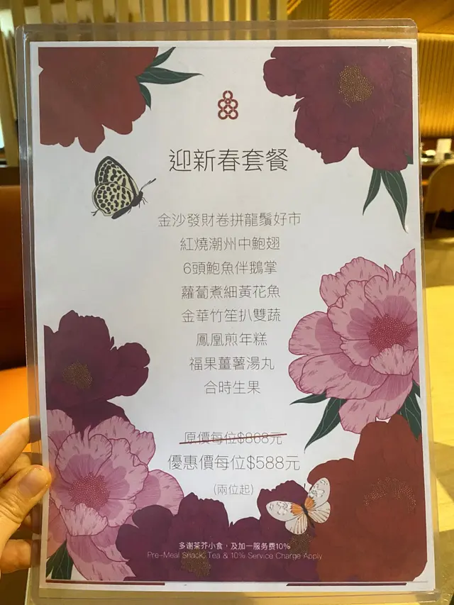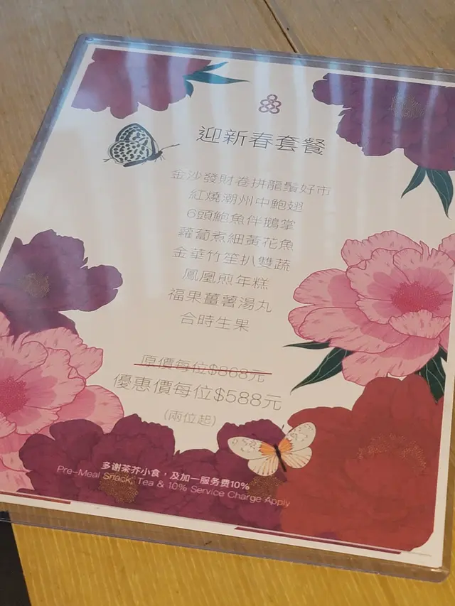 臨近新年期間,當然要外出吃頓好料,便帶同母親到酒樓吃飯,畢竟菜式比較適合長輩,我便聽取了朋友的意見,最終選擇了好友推介的尖沙咀區百樂小館餐廳。光顧當天餐廳正在推廣迎新春套餐優惠,從原價每位 $868,減至優惠價每位 $588,並且共包含有八款菜餚,以眾多款美食來說,價格可算是十分划算經濟。功夫茶吃潮州菜當然少不了配搭上一杯功夫茶,於入座後職員便先為我們奉上兩杯鐵觀音,入口味道茶香濃郁,甘甜清香,尾韻持久且有着微微苦澀回甘,很是適合用作解膩解渴。紅燒潮州中鮑翅中鮑翅份量充足,入口黏度適中,濃郁鮮甜,甚有膠質,魚翅條條分明,柔韌爽彈,真材實料,加入潮州翅必配的醋和芫荽,能提升其鮮味之餘亦能令味道更為清新。金沙發財卷拼龍鬚好市金沙發財卷就是把鹹蛋黃炸漿包裹上髮菜再進行炸製,外層色澤金黃的鹹蛋黃份量眾多,口感香脆爽酥,鹹香惹味,蛋黃味道濃郁,內餡的髮菜軟嫩柔滑,清香彈牙。龍鬚好市分開三層用料,外層多重的幼絲香口爽脆,中層用上蝦膠製作,味道鮮甜彈牙,內餡再配搭濃郁鮮嫩的蠔豉,多重口感配搭令層次十足,沾上甜醬同食更別有一番風味。旁邊的伴碟放置有數顆合桃,而且均以糖膠包裹並灑上白芝麻點綴,口感香甜酥脆,合桃味道濃烈。六頭鮑魚罐鵝掌茨汁鹹香鮮美,富有鮑魚鮮香氣味。鮑魚味道濃郁,煙韌彈牙,而內餡則製作成溏心狀態,口感帶點黏牙。鵝掌炆得軟腍,不論男女老幼皆能輕易咀嚼,入口柔軟香嫩,鮮味十足,兩款用料均盡吸醬汁,新鮮入味。伴碟的西蘭花亦香脆清甜,嫩滑爽口。蘿蔔煮細黃花魚師傅把黃花魚先煎香後再煮製而成,雖然魚隻原有骨刺較多,但絲毫不影響其可口程度,魚肉新鮮嫩滑,味道濃厚且鮮味突出,並有股獨特的魚香,配上湯底的鹹香,更增添滋味。金華竹笙扒雙蔬此道菜式配料豐富,用上金華火腿、竹笙、菜膽、娃娃菜、紅蘿蔔、菇菌,並加上茨汁。茨汁清香鮮味,金華火腿鹹中帶甜,香而不膩,竹笙香嫩彈牙,菜膽和娃娃菜軟腍嫩口,清爽鮮甜,紅蘿蔔片清甜爽脆,菇菌則潤滑細嫩,整體食材皆新鮮入味,而且清淡的味道亦可達到清味蕾之效果。鳳凰煎年糕鳳凰亦即是雞蛋,師傅把雞蛋攪拌開後再把年糕沾上蛋漿,然後進行煎製步驟,為求使其口感更為結實。年糕甜香軟糯,柔韌味濃,假若可製得再結實少許則更為可口。福果薑薯湯圓糖水的薑汁味道恰到好處,飲用時不會過於濃烈,於盛起的配料中亦能看見片狀的薑塊,可見用料十足。而福果就是白果,煲製後口感軟綿甘甜,味道帶有微微苦澀,具有益肺清熱等功效。糖水中的湯圓是自家製產品,外皮製得煙韌柔軟,富有口感,內餡的黑芝麻甘甜濃郁,香味醇正。合時生果水果是鮮橙子,師傅使用橙皮盛載並貼心地把其切粒,因而食用時可更方便。橙子可嚐出新鮮多汁,味道酸酸甜甜,清爽濃郁,用作飯後解膩消化很是適合。總結而言,餐廳裝潢高雅大氣,環境寬闊舒適,整潔衛生,菜餚真材實料,製作用心出色,食材入味可口,套餐價錢經濟合理,划算同時亦能品嚐多款美食,是與家人朋友們選擇酒樓吃飯聚餐的好地方。…查看更多