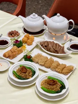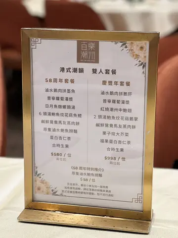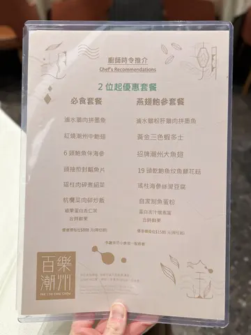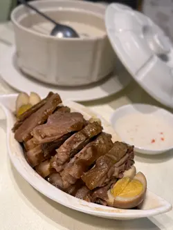 这间人气老字号中菜馆位于尖沙咀ELEMENTS圆方,邻近九龙站,品牌创立于1967年,迄今历史已逾半世纪,主打新派手工潮州菜,严选顶级当造食材,保留最纯正的潮州味道之余,又于传统的基础上注入现代创新风格。店内环境时尚而精致,设有独立包厢具备私隐度,氛围惬意且充满格调,适合家庭聚餐及商务宴会。前菜 - $20潮州卤水花生厚实而绵密,卤汁的咸香浓郁入味,回味悠长。原只卤水鲍鱼捞面 - $58/位经由卤汁长时间慢煮,鲍鱼入味不缩水,变得细腻而有适度的韧性,释放淡淡的胶质感,同时吸饱浓稠醇厚的卤汁湿润滑顺。杏仁炖白肺汤 - $98/位非常巧功夫的炖汤.汤色清澈透亮,没有多余的油腻感,细致滑顺散发阵阵浓郁的杏仁香气;白肺处理得极为干净,丝毫不腥,软糯绵密得带化,既滋补又不厚重。芋茸香酥鸭 - $188金黄酥脆的外皮毫不油腻,上层有绵密细腻的芋茸好香甜软糯,下层的鸭肉嫩而不柴,咸甜交织层次丰富。净鹅片豆腐 - $268/例卤水鹅片切得均匀薄透,皮薄而不腻,细嫩的鹅肉滑嫩而不柴,有丰富的肉汁和卤汁的香醇;软嫩细滑的卤水豆腐带有卤汁的风味,咬开内部则较为清新。潮式炸双枣 - $160即叫即炸金黄而不腻。虾枣采用新鲜虾肉制成,保留虾仁的鲜甜及弹性,更加入马蹄增添爽脆感;蟹枣则采用新鲜蟹肉制成,外有一层酥脆的腐皮,鲜甜扎实,同样有马蹄粒。蛋白杏仁茶 - $68/位细腻丝滑没有颗粒感,有杏仁的甘香,又有蛋白的嫩滑,清甜不腻好滋润。甜橙去皮的甜橙饱满多汁好清爽。…查看更多