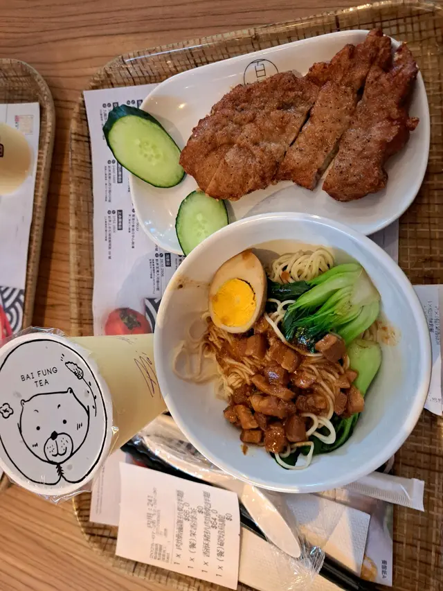 今次朋友請食飯,我哋嚟到希慎11樓嘅 food court,揀咗「百芳池上便當」。我叫咗 C5 滷肉雞扒便當,朋友選咗 C1 香酥烤鹽豬扒,兩款都係乾拌麵套餐,另送飲品,我哋揀咗冧鴉烏龍,清香解膩。滷肉雞扒煎得香口,滷汁味濃唔會死鹹,配搭爽口拌麵一流。朋友嗰份鹽豬扒鹹香十足,肉質彈牙,係重口味之選。麵條吸滿醬汁,整體味道好有層次。不過,由於 lunch 時段人流眾多,現場好多人,氣氛相當嘈雜,座位之間比較逼狹,唔太適合慢慢嘆飯。如果只係想快食一餐、醫飽肚,呢度仍然係銅鑼灣區內抵食之選,$130 兩個套餐包飲品,性價比唔錯。🍱🍖🍵…查看更多