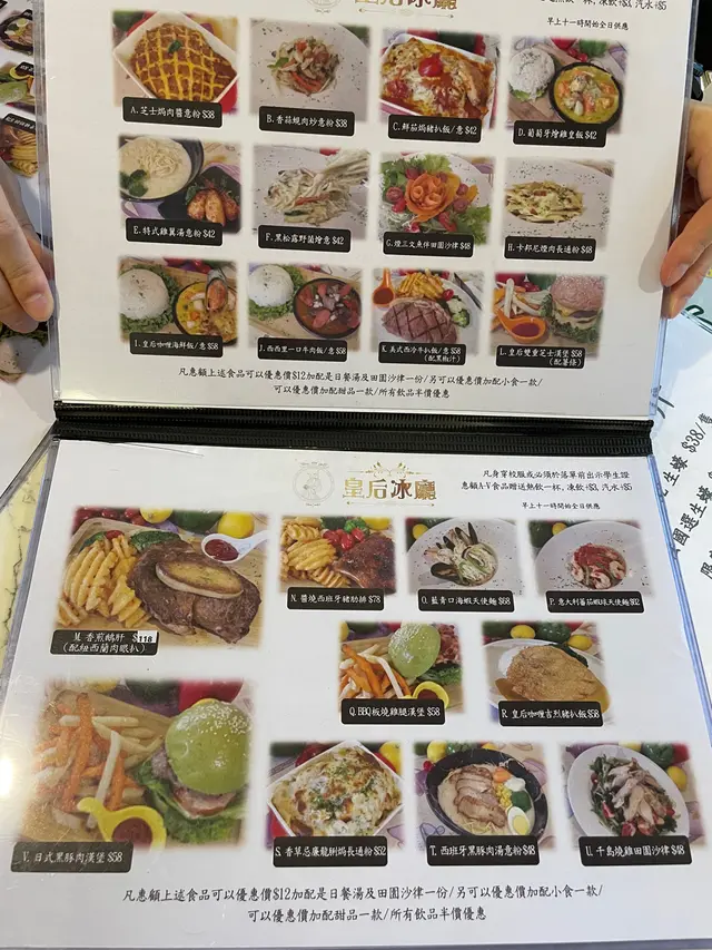 位於長沙灣既皇后冰廳,成日見人推介All day breakfast,終於試到啦!真係抵食,CP值高All day breakfast 併雞扒 $48呢個價錢真係好抵食,雞扒都好大塊,凍飲加$3加$6 就有個甘大個既菠蘿包,加$9有牛角蘇,個菠蘿包新鮮大個又好食美中不足係佢既海鹽蕉糖咖啡,特色咖啡係得熱飲無凍飲,所以最終都係飲普通咖啡佢仲可以選擇豬扒,牛扒就加$10,啲扒都大塊好食,唯一唔掂係部冷氣,係甘熱既天氣,揸完電單車拎住頭盔又熱,入到去無冷氣真係有啲辛苦!都幾好生意,多人食,如果到lunch time 要等位!呢間餐廳會令我返轉頭再食既一間餐廳!…查看更多
