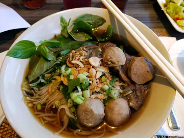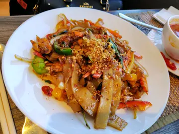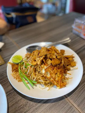上网揾到好评先至黎食 但佢个lunch set唔太ok 我地叫左两样野 两样野都无乜味 环境唔错既 个日去无乜人 静静地 有d自然光 几舒服 同朋友黎倾偈系不错的 但个set lunch真系fail😢 泰国鸡炒金边粉佢d鸡似系d豆腐干 真系几干 所以食唔出系鸡 金边粉质地ok 但真系无乜味 我都唔系重口味既人 但呢个真系令人几失望菠萝炒饭有少少菠萝味既都 似酒楼普通西炒饭多d 明明睇食评见d相好吸引 但应该唔系呢d set lunch啰 最好食系菠萝炒饭上面呢两块薯片