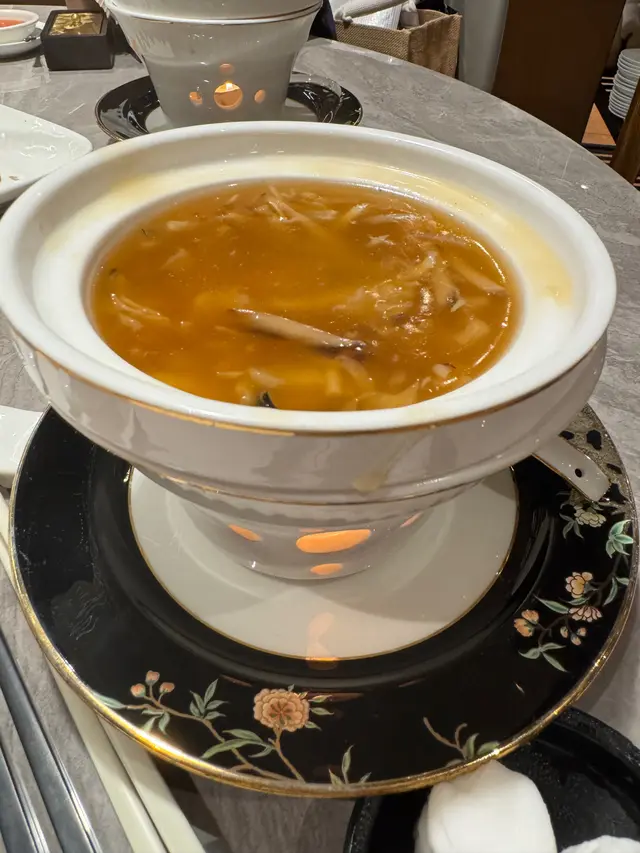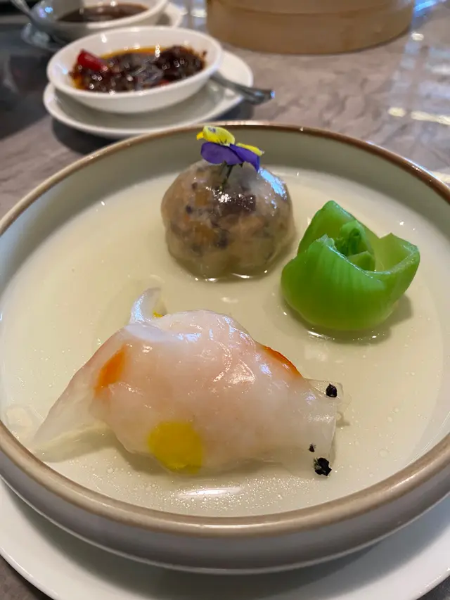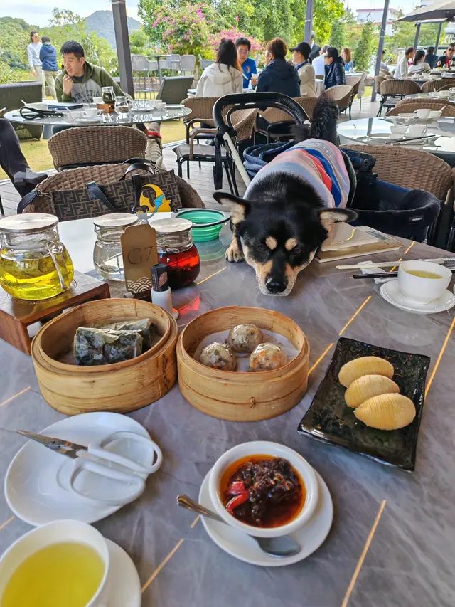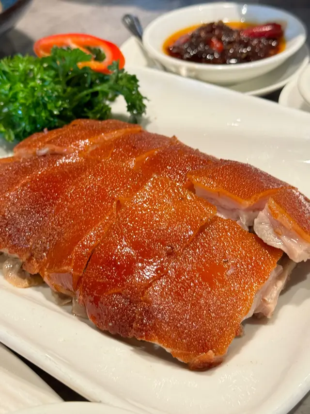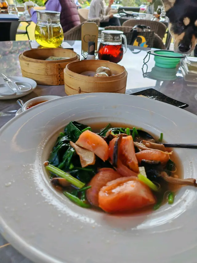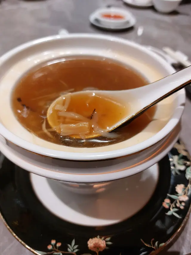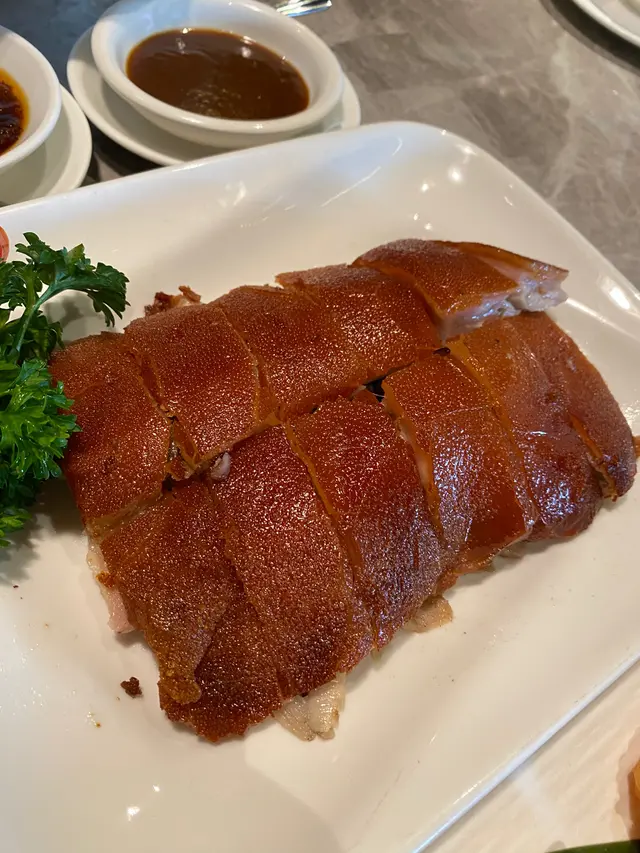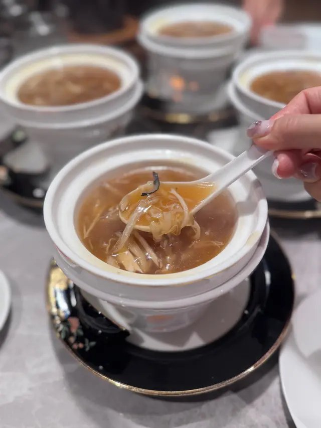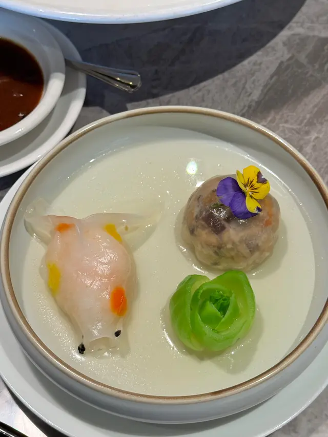 今日天氣好好帶狗狗入大埔三門仔放電,意外邂逅兩位朋友,那就一行四人到附近食個晚飯聚聚,由於帶着小狗,就揀了這家「皇朝明珠」粵菜酒家。店員安排我們坐在戶外雅座,讓我們一面用餐,一面飽覽三門仔漁村美景,實在令人心曠神怡😊以下是我們點的菜式,每樣都好味,全部清晒碟👍令日燉湯是⭐️螺頭羊肚菌竹笙燉雞,湯色清澈卻滋味濃郁,滋陰潤燥。再叫咗兩份⭐️鮑參翅肚羹,湯羹濃稠適中,奢華卻不張揚。⭐️招牌明爐燒脆皮乳豬剛燒好出爐,乳豬皮卜卜脆不膩口,肉香嫩滑加上豐富的油香,好食到停唔到口。⭐️紅燒乳鴿,剛剛炸好即上枱,香氣撲鼻而來,外脆內嫩好Juicy,夠晒入味好食。⭐️法式紅酒燴牛尾牛尾燉煮至軟爛,帶少許紅酒香甜,蕃茄醬汁醇厚,特別香濃。⭐️魚鰾浸勝瓜魚肚鮮美順滑吸飽湯汁配埋勝瓜清甜,整個菜清爽消暑又好食。⭐️櫻花蝦蝦膏海鮮菜粒炒飯鮮味發揮到極致,炒飯粒粒分明,蝦仁及帶子爽口彈牙,大家都讚口不絕。最後食埋甜品及糖水,⭐️十勝紅豆桂花糕,軟糯香甜,帶着淡淡的桂花清香,⭐️椰汁紫米露,甜度適中,好滋潤。這餐超級滿意滿足,這間粵菜餐廳,環境靚食物質素高,一定會再回訪⭐️⭐️⭐️⭐️⭐️…查看更多