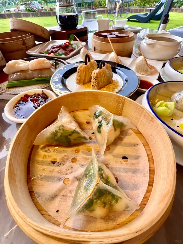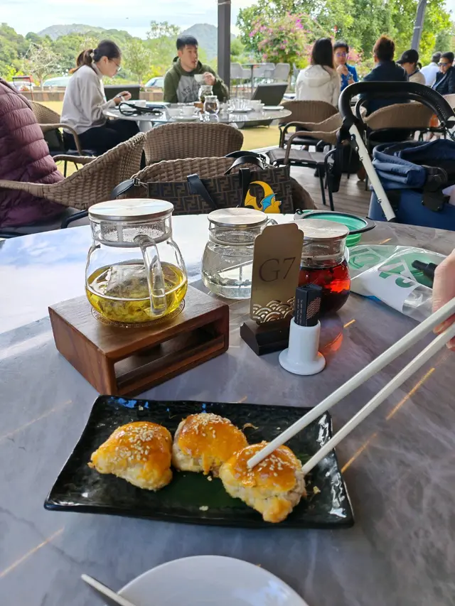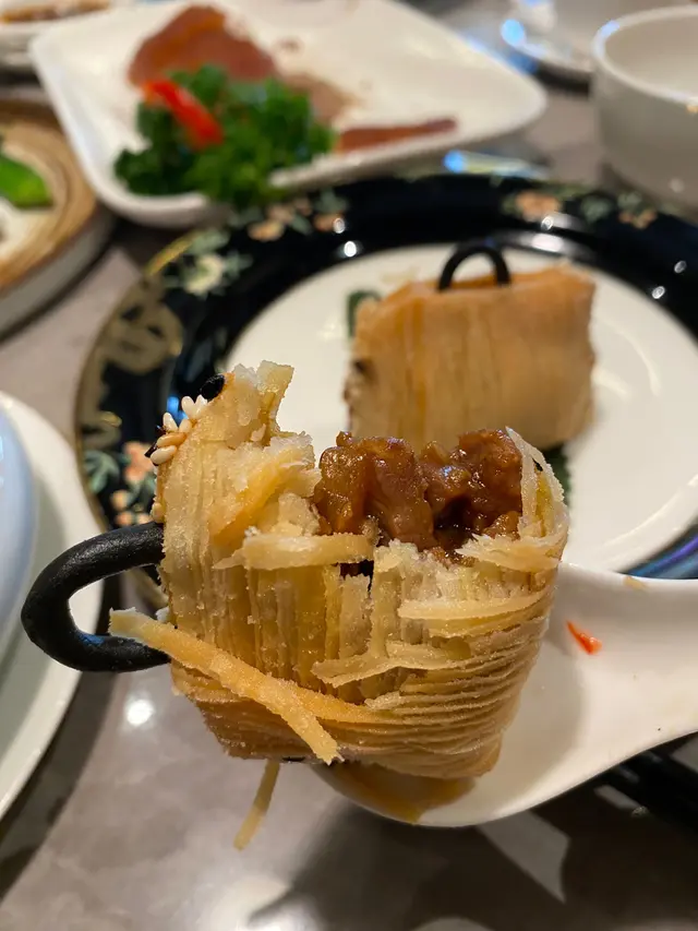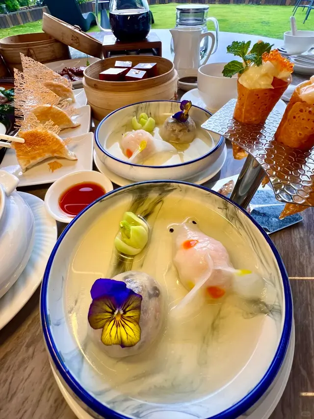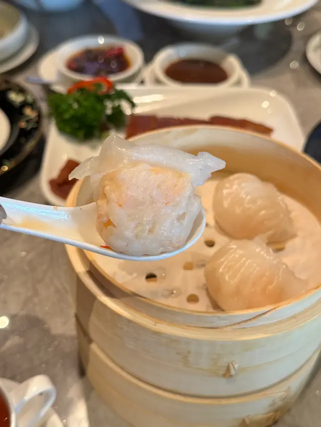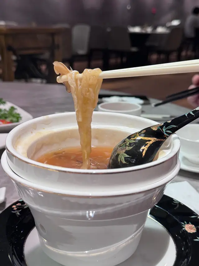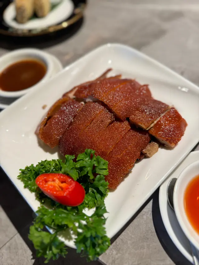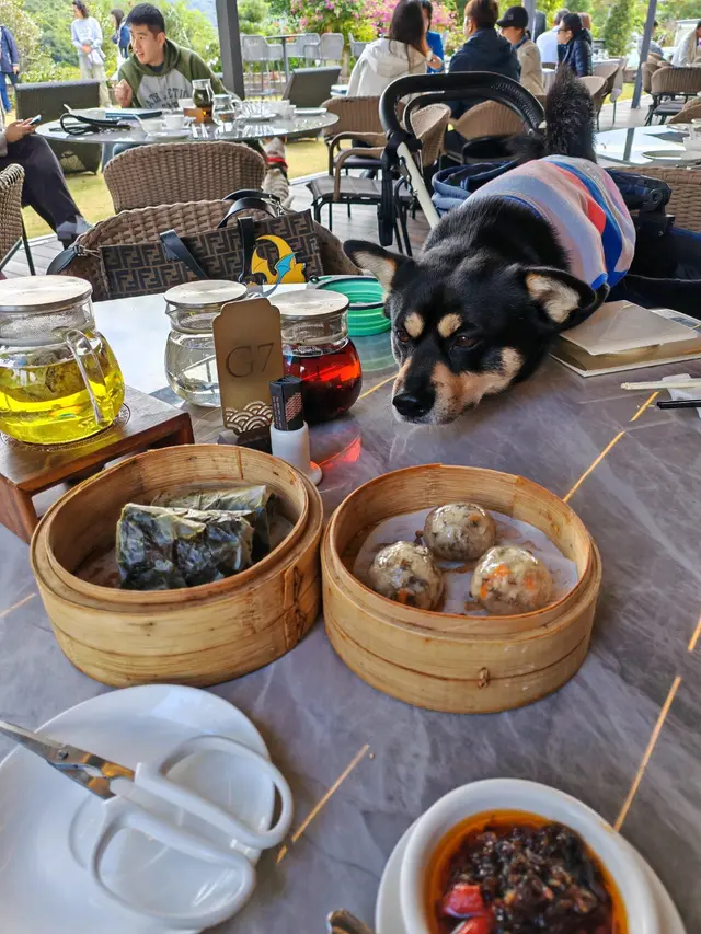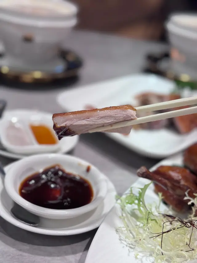 今日天氣好好帶狗狗入大埔三門仔放電,意外邂逅兩位朋友,那就一行四人到附近食個晚飯聚聚,由於帶着小狗,就揀了這家「皇朝明珠」粵菜酒家。店員安排我們坐在戶外雅座,讓我們一面用餐,一面飽覽三門仔漁村美景,實在令人心曠神怡😊以下是我們點的菜式,每樣都好味,全部清晒碟👍令日燉湯是⭐️螺頭羊肚菌竹笙燉雞,湯色清澈卻滋味濃郁,滋陰潤燥。再叫咗兩份⭐️鮑參翅肚羹,湯羹濃稠適中,奢華卻不張揚。⭐️招牌明爐燒脆皮乳豬剛燒好出爐,乳豬皮卜卜脆不膩口,肉香嫩滑加上豐富的油香,好食到停唔到口。⭐️紅燒乳鴿,剛剛炸好即上枱,香氣撲鼻而來,外脆內嫩好Juicy,夠晒入味好食。⭐️法式紅酒燴牛尾牛尾燉煮至軟爛,帶少許紅酒香甜,蕃茄醬汁醇厚,特別香濃。⭐️魚鰾浸勝瓜魚肚鮮美順滑吸飽湯汁配埋勝瓜清甜,整個菜清爽消暑又好食。⭐️櫻花蝦蝦膏海鮮菜粒炒飯鮮味發揮到極致,炒飯粒粒分明,蝦仁及帶子爽口彈牙,大家都讚口不絕。最後食埋甜品及糖水,⭐️十勝紅豆桂花糕,軟糯香甜,帶着淡淡的桂花清香,⭐️椰汁紫米露,甜度適中,好滋潤。這餐超級滿意滿足,這間粵菜餐廳,環境靚食物質素高,一定會再回訪⭐️⭐️⭐️⭐️⭐️…查看更多