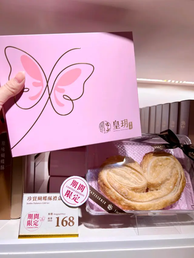 我看到一个👀珍宝蝴蝶酥我也是头一次见到这么大的蝴蝶酥,比手掌还要大😂好可爱 很想带回家🙌🏻今日路过皇玥,俾蝴蝶酥吸引左,父亲节就到,顺便买两盒返去孝敬一下爸爸👨🏻 皇玥系香港很有名气,是火🔥热的伴手礼店铺金黄脆曲奇🍪呢个味道比较特别,而且我好钟意食有蛋黄味既野,呢个系蛋黄味既曲奇,曲奇香脆牛油味浓,而且每一啖都有蛋黄嘅香酥味!🥨原味蝴蝶酥🥨原味系好食既,呢个蝴蝶酥都系用天然嘅牛油制成非常酥脆,每一啖都令人回味无穷🤤#蝴蝶酥#皇玥蝴蝶酥 #香港皇玥 #牛油曲奇 #香港蝴螺酥 #香港手信 #香港伴手礼 #曲奇饼…查看更多