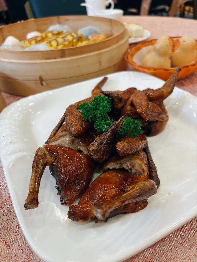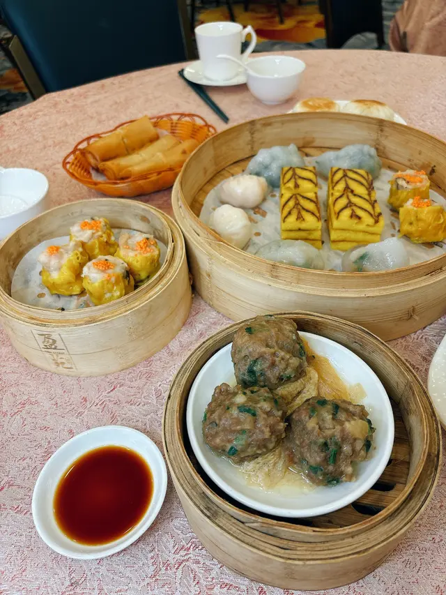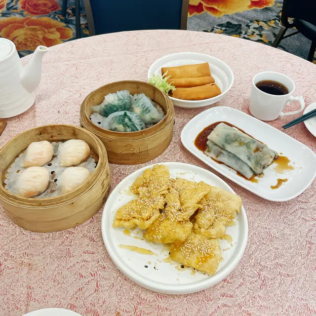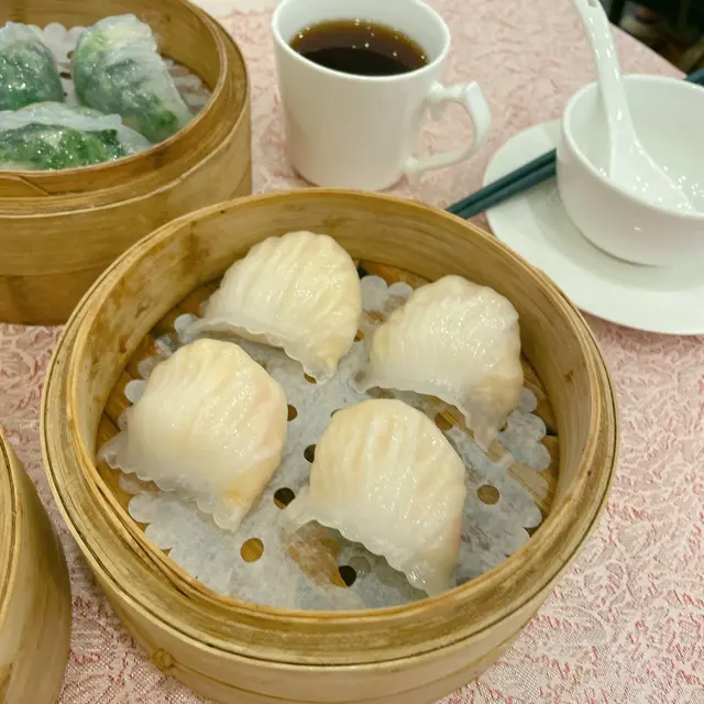 陽光穿透落地玻璃,我哋四人霸咗張窗邊枱,望住街景吹水👯♀️。成間廳掛住盞水晶吊燈💡,光猛到連姐妹塊遮瑕膏有幾厚都睇得一清二楚😂!環境熱鬧到似茶樓版嘉年華,阿姐推住點心車左穿右插🚌,隔離枱阿叔傾股票傾到拍枱🗣️,我哋啲八卦話題即刻完美隱形~💟原籠蒜香龍躉件蒸飯 💖💖💖💖 魚肉厚到唔使錢咁!蒜片炸到金黃脆口🧄,飯粒吸晒魚油同蒜香,揭蓋嗰陣蒸氣撲面💨,成個過程似開寶箱🎁~龍躉皮仲黏住飯焦,膠質感爆燈💋 💟盈圖蝦餃皇 💖💖💖💖💖 鮮度即戰力代表作!薄透嘅澄皮包住四隻爽彈蝦🍤,咬落"卜"聲爆汁💦,筍粒仲要脆過薯片!姐妹話:「呢啲先叫游水蝦啊~」🦐💟鮮蝦菜苗餃 💖💖💖💖 翡翠色外皮透住粉紅蝦影🌿,菜苗青草味撞埋蝦鮮,好似食緊個田園海灘🏖️!重點係:冇草腥! 💟豬潤燒賣 💖💖💖💖 儀式感滿分環節!豬肝厚切過iphone📱,淋咗啲豉油酒香,用筷子督穿蛋黃一刻🍳,流心漿包住肉餡...邪惡到姐妹們齊聲「嘩~」👏💟黑金流沙包 💖💖💖💖💖 竹炭包黐到成手都係😆!一撕開,鹹蛋黃漿湧出嚟🌋,熱辣辣燙嘴但忍唔住連啜三口!姐妹笑:「食到變黑唇膏啦~」💋 總結:人均$200有找👛,坐足三粒鐘都冇人趕👏!蝦餃鮮度贏晒全場🏆,流沙包同豬潤燒賣嘅視覺戲碼夠晒IG-able📸。最正係嘈得自在🗣️,我哋由明星離婚傾到阿媽催婚😂,完全冇貴價餐廳嘅拘束感~會為咗蝦餃皇encore🦐!…查看更多