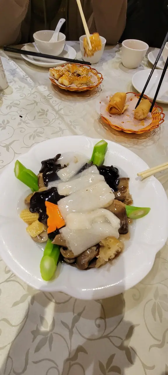 # 团年饭菜单在这个特别的日子里,团年饭的菜单丰盛而精致,象征着团聚与新年的美好祝愿。以下是盈暉為我们的精心准备的菜品:## 菜单### 至尊泰式烤乳豬全體外脆内嫩的烤乳猪,配以独特的泰式调味,令人垂涎欲滴,象征着富贵与吉祥。### 上湯芹香生蝦伊麵新鲜的生虾与香脆的芹菜搭配,浸泡在浓郁的高汤中,丝滑的伊面更是提升了整道菜的风味。### 脆香黃金炸蝦多士外层金黄酥脆,内里鲜嫩多汁的炸虾,搭配香脆的多士,口感丰富,令人回味无穷。### 唱王翡翠帶子鳳片新鲜的带子与翡翠般的蔬菜相结合,色彩斑斓,口感清新,寓意着年年有余。### 蟹肉海皇花膠會素翅结合海味与素食的经典之作,蟹肉、花胶和时令蔬菜的搭配,既美味又营养丰富。### 清蒸大沙巴龍躉选用新鲜的大沙巴龙躉,清蒸至刚刚熟透,保留了鱼肉的鲜美与营养,是一道不可或缺的佳肴。### 盈暉脆皮燒雞香气四溢的脆皮烧鸡,皮脆肉嫩,搭配特制的酱料,让人一试成主顾。### 杞子鮮竹浸時蔬新鲜时蔬与杞子的结合,清淡可口,既健康又美味,为丰盛的团年饭增添了一丝清新。### 臘味糯米飯香气扑鼻的腊味糯米饭,粒粒分明,口感软糯,浓厚的年味让人倍感温暖。### 康寧蓮蓉圖包精致的莲蓉包,外形美观,馅料香甜,象征着团圆与和谐。### 合時果盤新鲜时令水果拼盘,色彩缤纷,既美观又健康,为团年饭增添了清爽的口感。### 精美甜品最后的甜品是精心制作的各式糕点,既满足味蕾,又为团年饭画上完美的句号。---团年饭不仅是美食的盛宴,更是家人团聚、共庆佳节的时刻。愿大家在这顿丰盛的团年饭中,享受美味,分享快乐,迎接新的一年!…查看更多