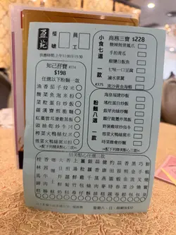 难得同几位旧同事聚会,饮茶系最好嘅选择,可以慢慢食而且又坐得舒服,酒楼落单效率高,上菜速度亦算快。推介午市点心孖宝,可以随便拣两款,午市两个点心$40都唔使,好抵呀!桂林牛肉肠:肠粉皮薄滑嫩黑金流沙包:外皮黑金色泽吸睛,内馅带咸蛋黄香浓流心😋 黑金比较特别,平时都系白色传统流沙包款式知己孖宝套餐,可以拣一款饭或粉面和两款点心,套餐比较划算。罗汉斋脆面:面底好脆,斋料丰富,份量十足咖喱土鱿:咖喱香浓,士鱿爽口,比较少酒楼有咖喱土鱿蒜香蒸排骨:蒜香扑鼻,排骨腌得入味叫咗两款优惠套餐,再叫咗其他款式点心大良炸鲜奶:外脆内嫩,奶香浓郁,非常惊喜呢度竟然有得食!鲍鱼仔汤饺:汤底清甜,充满住鲍鱼仔和菇菌嘅清香,鲍鱼仔提升整体鲜味,有别于其他灌汤饺。蒜蓉虾春卷:金黄酥脆,虾肉鲜甜,香口惹味。百花酿鱼肚:鱼肚厚实,百花馅滑嫩鲜美午市菜式选择多,有多款午市优惠套餐选择,性价比高,无论是点心还是小菜都有心思。…查看更多