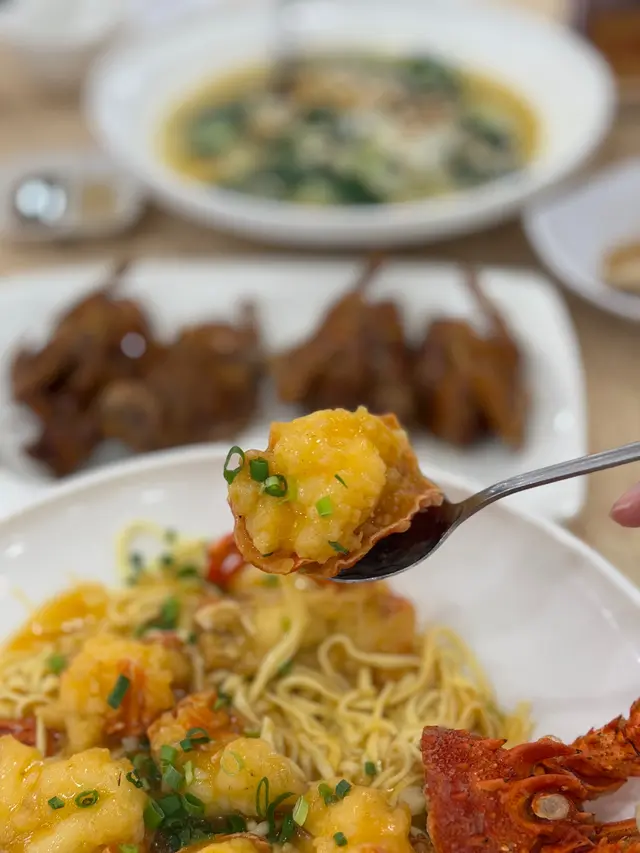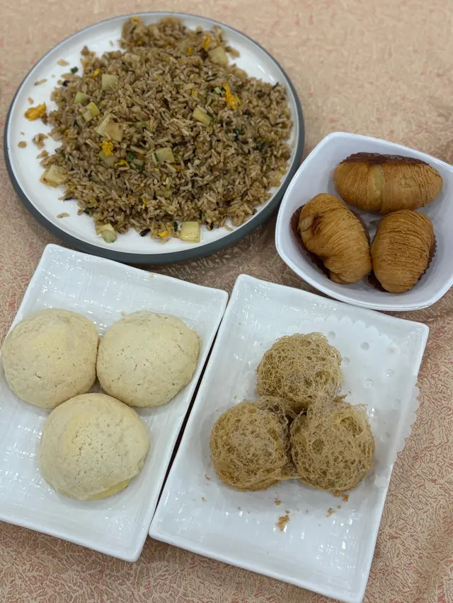 難得同幾位舊同事聚會,飲茶係最好嘅選擇,可以慢慢食而且又坐得舒服,酒樓落單效率高,上菜速度亦算快。推介午市點心孖寶,可以隨便揀兩款,午市兩個點心$40都唔使,好抵呀!桂林牛肉腸:腸粉皮薄滑嫩黑金流沙包:外皮黑金色澤吸睛,內餡帶鹹蛋黃香濃流心😋 黑金比較特別,平時都係白色傳統流沙包款式知己孖寶套餐,可以揀一款飯或粉麵和兩款點心,套餐比較划算。羅漢齋脆麵:麵底好脆,齋料豐富,份量十足咖喱土魷:咖喱香濃,士魷爽口,比較少酒樓有咖喱土魷蒜香蒸排骨:蒜香撲鼻,排骨腌得入味叫咗兩款優惠套餐,再叫咗其他款式點心大良炸鮮奶:外脆內嫩,奶香濃郁,非常驚喜呢度竟然有得食!鮑魚仔湯餃:湯底清甜,充滿住鮑魚仔和菇菌嘅清香,鮑魚仔提升整體鮮味,有別於其他灌湯餃。蒜蓉蝦春卷:金黃酥脆,蝦肉鮮甜,香口惹味。百花釀魚肚:魚肚厚實,百花餡滑嫩鮮美午市菜式選擇多,有多款午市優惠套餐選擇,性價比高,無論是點心還是小菜都有心思。…查看更多