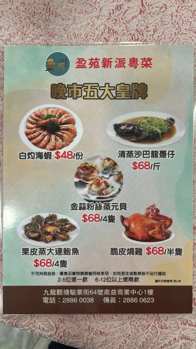 盈苑 (观塘) 网上订位享特别优惠并赚Rice Dollars 网址: https://s.openrice.com/QrLS08e8C00 地址: 香港觀塘駿業街64號南益商業中心1樓 电话: +852 28860038