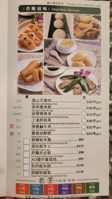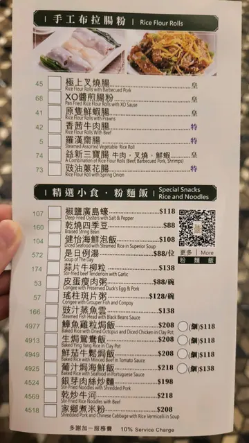 肚里满满,脑袋空空。前菜鲜有的新鲜炸腰果、开胃荞头,为容易饱济的中式点心准备消食健胃。(1) 传统鲜虾饺外皮爽韧不黏牙,原只虾仁没有过份切碎而保留口感,亦充满鲜味,啖啖肉汁。(2) 香菇蒸烧卖名列个人排行榜第一位。但竟然遗漏了⋯⋯果然吃不到的美好是最悲伤的事。(3) 雪山叉烧包馅料份量恰到好处,加上表面雪山糖霜,整体松软亦富有口感。(4) 虾多士沾上蜜桃沙律是画龙点睛之笔,瞬间将炸物变成咸甜小吃,带点小清新。(5) 蜜汁脆蟮蟮真的脆,腩位细骨不算太多。但蜜汁收汁可以更好,令脆蟮更加焦香惹人。(6) 春风得意肠(7) 健怡海鲜泡饭每种配料切成到丁粒,入口绝无违和感。胡椒的香气在热气氤氲中映出米粒的丰沛。份量有3-4碗。(8) 极上叉烧皇厚实大块,内部软嫩。虽然叉烧酱焦糖化不足,但保留叉烧的柔软。(9) 脆皮烧腩仔位置偏肥。(10)金丝脆麻花(11) 生磨杏仁茶甘甜若泉,杏香四溢。(12) 莲蓉西米焗布甸中餐用毕通常非常有饱济感,但莲蓉甜度比例刚好,只为嘴馋的人带来一点甜,意犹未尽。…Read More