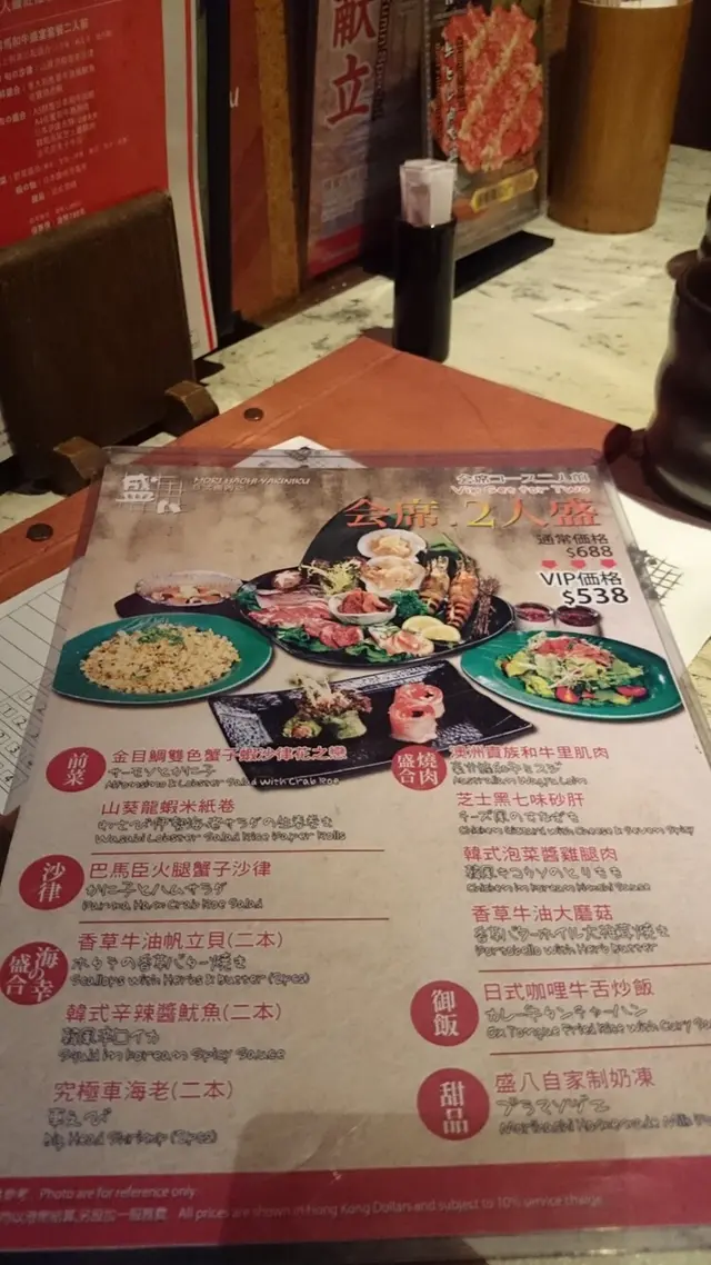 一直都知食放題不會有好東西吃,不過不致於會食一次永不回頭,過往每年有聯誼都會去盛八,價錢不會便宜,但質素有保證,每次都叫二塊A5燒,今年再去變了做放題,但心想過往質素不差,放題即使比其他貴都應該有保證,點知一座低見個餐牌十分簡單,便問下員工介紹下,不問由自可,問左仲唔明,幾個員工都不甚喜歡介紹,問第二句已經有面色睇,不明下點了最貴個和牛餐,來到塊和牛跟本不合適燒烤,薄如紙,只是火煱用和牛,一燒就爛開。。其他雞豬牛不用講,完全不值四百元一位,加上員工態度極差,只會講永無下次,盛八已經被列入我的黑名單。查看更多