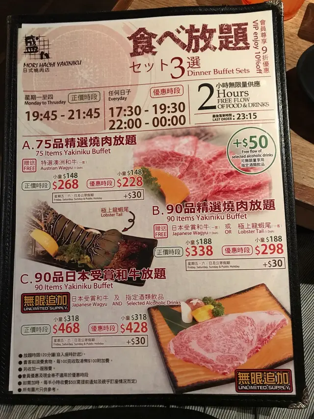 盛八日式燒肉放題店 (铜锣湾) 网址: https://s.openrice.com/QrLS0fpu000 地址: 香港銅鑼灣怡和街2-6號英光大廈3樓 电话: +852 31060183