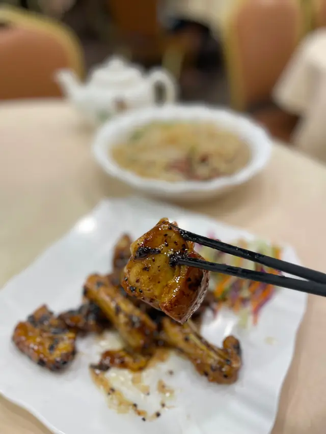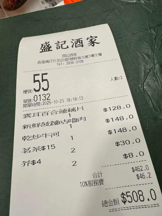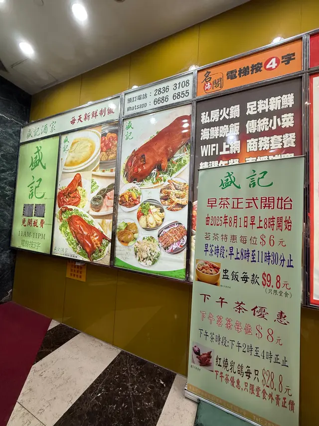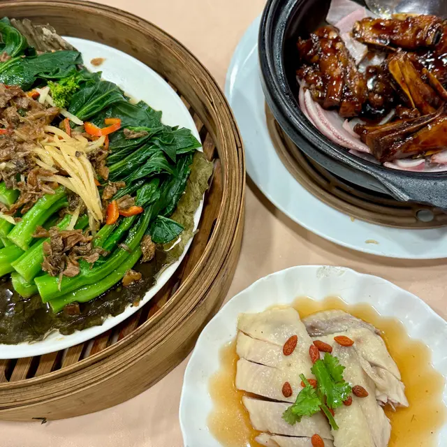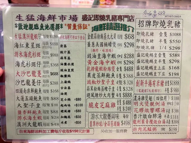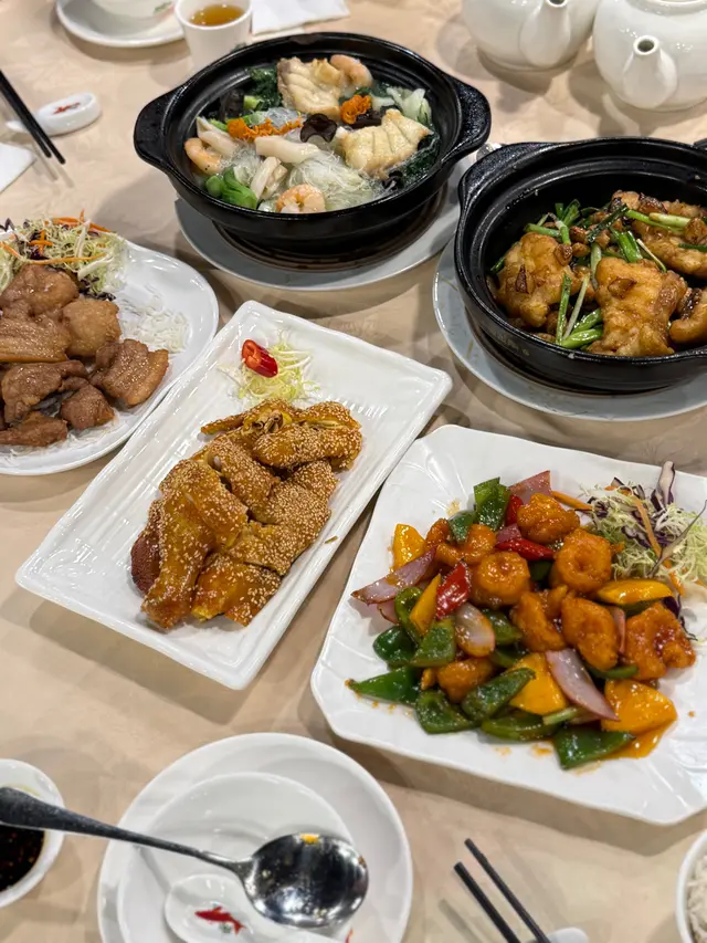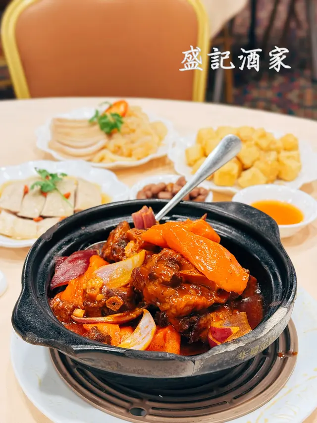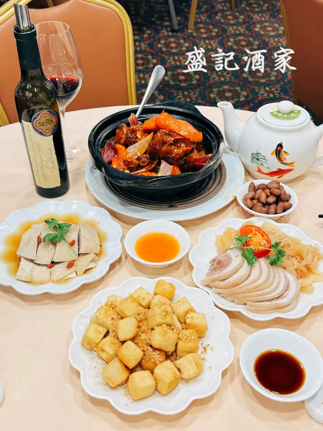2025年8月11日 星期一今晚約埋屋企人去咗灣仔前身叫勝記,依家叫盛記既老字號酒家食飯,冇諗到星期一去食都座無虛席,差唔多全場都坐滿晒,好彩一早有訂位,留咗一張大枱俾我哋餐牌除咗馳名乳豬係餐廳推介之外,仲有好多唔同嘅菜式可以選擇,價錢灣仔嚟講都唔算太貴,由於我哋有七個人,所以大約揀咗六至七個小菜,店員都話應該足夠我哋食等咗一陣第一道菜就送到,係海蜇燻蹄,海蜇爽脆彈牙,帶微酸微辣,而燻蹄就煙韌入味,滷香濃郁兩者配合,既清新又開胃,口感層次分明之後有餐廳招牌菜風沙芝麻雞,外皮酥脆帶蒜香,雞肉嫩滑多汁,而芝麻香氣撲鼻,入口鹹香微辣,令人食指大動,一啖接一啖停唔到口呢個係野菌百福豆腐,豆腐滑嫩細膩,吸收晒野菌既醬汁,而菇菌就爽口多汁,配搭埋翠綠菜心,味道清新又富層次,齒頰留香然後有欖角冰梅骨,排骨外層微脆,肉質嫩滑,冰梅醬就酸甜醒胃,欖角咸香濃郁,食落入口即化,令人食完仲想即刻encore!!再黎有盛記小炒皇,蝦仁爽口彈牙,魷魚鮮嫩入味,再配搭蔥段同洋蔥等炒香,鑊氣濃郁,鹹香微辣,每啖都充滿香氣同鮮味跟住有瑤柱蛋白炒飯,飯粒乾爽分明,蛋白滑嫩清香,瑤柱鮮味濃郁,炒香之後更添層次,入口淡雅不膩最後有濃味海皇雜菜煲,粉絲吸收晒海鮮湯汁,滑溜入味,蝦、魷魚鮮甜彈牙,配搭埋菇菌、蔬菜,令到湯底濃郁鮮香,層次豐富,暖胃又滿足埋單食咗千幾蚊,除返每人都係百幾蚊左右,食到個個都飽晒…查看更多