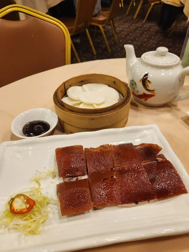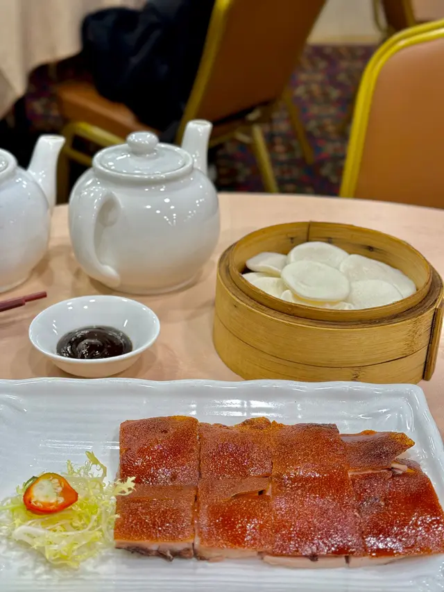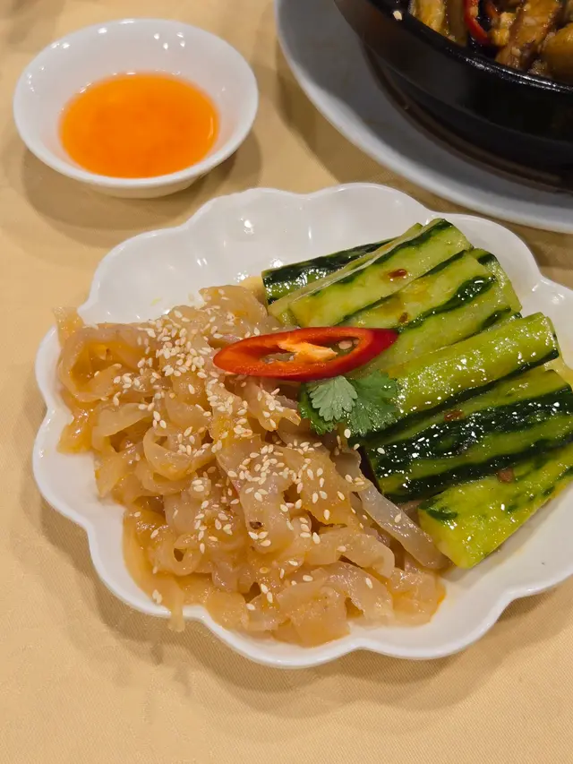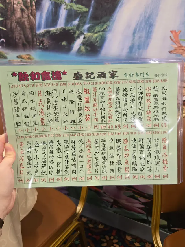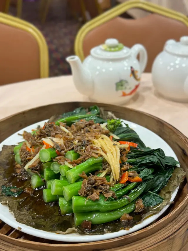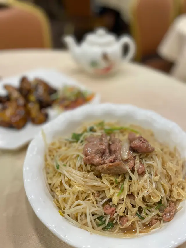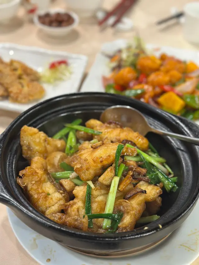 2025年8月11日 星期一今晚約埋屋企人去咗灣仔前身叫勝記,依家叫盛記既老字號酒家食飯,冇諗到星期一去食都座無虛席,差唔多全場都坐滿晒,好彩一早有訂位,留咗一張大枱俾我哋餐牌除咗馳名乳豬係餐廳推介之外,仲有好多唔同嘅菜式可以選擇,價錢灣仔嚟講都唔算太貴,由於我哋有七個人,所以大約揀咗六至七個小菜,店員都話應該足夠我哋食等咗一陣第一道菜就送到,係海蜇燻蹄,海蜇爽脆彈牙,帶微酸微辣,而燻蹄就煙韌入味,滷香濃郁兩者配合,既清新又開胃,口感層次分明之後有餐廳招牌菜風沙芝麻雞,外皮酥脆帶蒜香,雞肉嫩滑多汁,而芝麻香氣撲鼻,入口鹹香微辣,令人食指大動,一啖接一啖停唔到口呢個係野菌百福豆腐,豆腐滑嫩細膩,吸收晒野菌既醬汁,而菇菌就爽口多汁,配搭埋翠綠菜心,味道清新又富層次,齒頰留香然後有欖角冰梅骨,排骨外層微脆,肉質嫩滑,冰梅醬就酸甜醒胃,欖角咸香濃郁,食落入口即化,令人食完仲想即刻encore!!再黎有盛記小炒皇,蝦仁爽口彈牙,魷魚鮮嫩入味,再配搭蔥段同洋蔥等炒香,鑊氣濃郁,鹹香微辣,每啖都充滿香氣同鮮味跟住有瑤柱蛋白炒飯,飯粒乾爽分明,蛋白滑嫩清香,瑤柱鮮味濃郁,炒香之後更添層次,入口淡雅不膩最後有濃味海皇雜菜煲,粉絲吸收晒海鮮湯汁,滑溜入味,蝦、魷魚鮮甜彈牙,配搭埋菇菌、蔬菜,令到湯底濃郁鮮香,層次豐富,暖胃又滿足埋單食咗千幾蚊,除返每人都係百幾蚊左右,食到個個都飽晒…查看更多