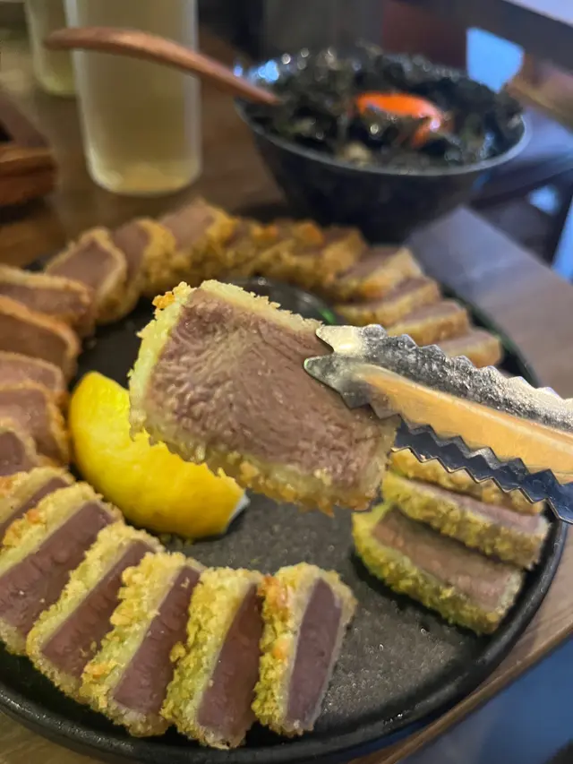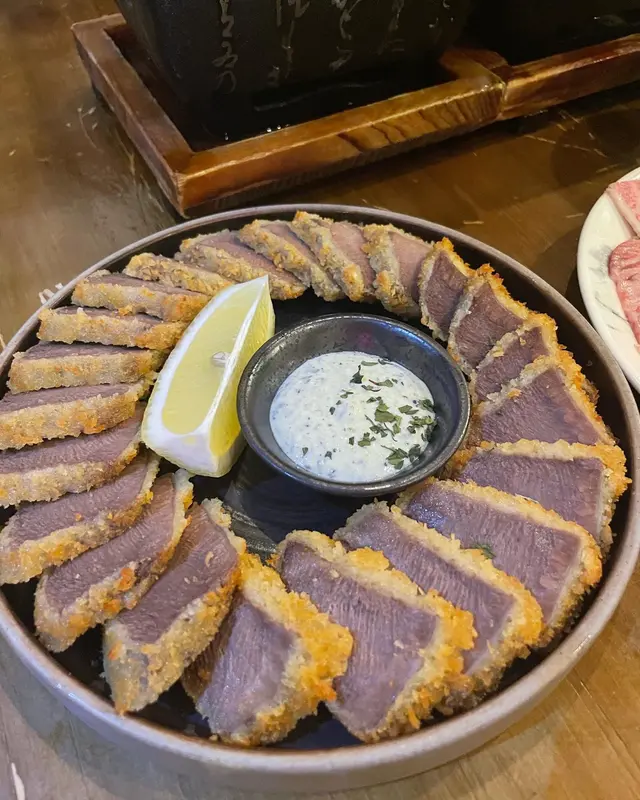 【♾️無限添吉列牛脷定食$140有找⁉️ 高質小牛排|月見飯✨】推薦程度:●●●●●抵食程度:●●●●●———(先抱歉) 原諒我當日冇帶相機,只有用手機影,但又超想分享呢間平靚正吉列牛餐廳🥺🙌🏻 同朋友叫咗2個set分享,食到捧住個肚走連加一都係人均$170左右✨ 抵食之餘質素都算高🔥 而且環境好舒服,啱晒同朋友嚟聚舊🤍🔥 吉列牛脷(∞g) 午市定食|$126超超超超大份‼️ 最後以免浪費都只係追加咗0.5份😹 吉列邊皮仲到好香脆,亦唔會同牛脷分離,石燒後仍然食到邊位嘅香脆同牛脷嘅口感,雙重享受✨ 牛味唔算好出眾,但不過不失~ 無限添嚟講覺得不論質素定份量都交足功課,抵讚👍🏻✨ 定食包括沙律+冷泡茶+紫菜月見飯~ 沙律細細份,但帶淡口嘅芝士同醋汁,好開胃🥗 冷泡茶淡淡幽香,唔錯;紫菜月見飯一撩開黃蛋就好治療感🥺 蛋黃汁加上紫菜咸香配飯真係冇得輸🙌🏻🐮 吉列Prime小牛排(170g) 午市定食|$166由色澤到味道都比較重牛感🤍 食落外皮同樣酥脆可口,而小牛排嘅牛味更為出眾,仍然未到好驚艷,但都對得起價錢,CP值高🌟 定食配套同上,唔特別多講~ …查看更多