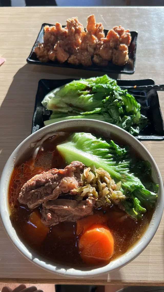 一入去侍應已經同我哋講:冬瓜茶同湯可以免費任飲嫁。我哋叫咗個真台客牛肉麵小辣加沙茶醬是免費湯底味道唔錯,就算加咗沙茶醬食完都唔會口乾!牛肉好大嚿,夠淋。個台灣麵都夠彈牙糖心蛋同皮蛋都係追加小食皮蛋個心軟度做得好好真台客大雞排配炸醬乾拌麵加糖心蛋 同蚵仔雞排超大塊外脆內軟,上面有少少辣粉,好香口。乾拌麵都係有口感彈牙!追加蚵仔上邊有啲醬,唔會太寡飲品叫咗冬瓜茶鮮奶不過本店有任飲冬瓜茶,只係小編心繫冬瓜茶心個湯好清有蛋花同埋紫菜,我飲咗兩碗…查看更多