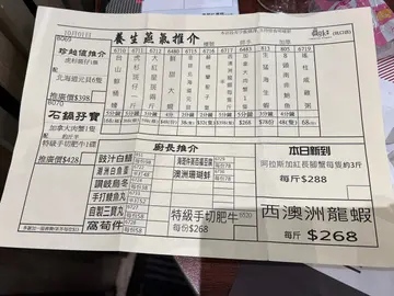 假期同家人去饮茶,去咗间以为系新嘢嘅《真味鲜厨》,望到啲餐牌,cher!海港集团嘅!本身对海港嘅印象都唔系话太好,佢嘅食物质素嘅落差可以好大,今餐可以好好食,会期待下一次,但再次帮衬时,就差到唔想再帮衬,所以都冇话佢呢间唔同名嘅茶楼抱有好大嘅期望,但不来也来了,就睇下系好定差。我地点咗分几次点咗14样点心,最后嚟得13样,其中一样问咗两次都系有落到单,真系摸不著头脑。我哋最后食咗黑椒金钱肚、香煎萝卜糕、蟹籽烧卖皇、潮州粉果、蚝皇叉烧包、家乡煎薄罉、鲍汁凤爪、翡翠虾饺皇、刴椒蒸鱼云、黑椒牛仔骨、金沙银萝肠、生滚鲷鱼片粥、大豉汁蒸排骨。呢13样嘢,「蟹籽烧卖皇」我真心觉得最唔好食,呢个系佢整得唔好食,佢冇猪肉味之余仲要系有阵唔知咩味,酒味?定系啲肉变咗?感觉又唔似,同埋佢个皮系瘀瘀黑黑咁,一啲生气都冇。另外一个我觉得唔好食嘅系「潮州粉果」,呢个系我唔喜欢佢个味道同质感,就同佢本身嘅制作无关。其他11样系正常嘅点心嘅味道,要讲惊喜嘅系有四款我一响唔食嘅两款点心,一个系「凤爪」,好少可觉得啲凤爪好饱满同好有骨胶原;第二个系「刴椒蒸鱼云」,我一向唔食咁多骨嘅嘢,我只系试下味,但最后有一半系我食哂。佢做到好惹味,虽然鱼云一定系多骨,但佢嘅香味系好难令人抵抗,有啲想知佢个汁系用咩嚟整;另外一个赞嘅系「金沙银萝肠」,虽然佢有啲似炸两,但味道系唔同,佢系用肠粉包萝卜嘅春卷! 萝卜粒清甜,加上春卷酥脆,而且份量都唔少,实在系好夸张。第三样系「生滚鲷鱼片粥」,咁怕食鱼嘅我都觉得味道唔错,鲷鱼片有好多块,仲要好大块,肉质好爽同埋冇乜骨,呢个真心赞嘅。叫咗咁多嘢,谂住都唔平,连茶钱加一,埋单只系$403,比我地想像中平好多。…查看更多
