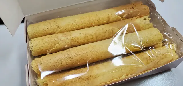 唔知咩法式,佢賣左幾十年都係呢個味,本身唔鍾意食梳窿嘅蛋捲,咁我覺得好食,不過而家好難買又貴,已經冇食好耐。