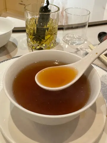 餐厅主打粤菜,融合新派风格及传统菜式。餐厅更拥有落地玻璃窗,可俯瞰跑马地马场及维港美景。每位客人可选一款茶叶享用。前菜三品热情的玫瑰 | 陈醋沙姜猪手 | 远年花雕海刺参三款各有特式,《热情的玫瑰》是腌渍热情果,酸酸甜甜,非常开胃,《陈醋沙姜猪手》浓郁陈醋香气,猪手入味弹牙,《远年花雕海刺参》花雕酒香气醇厚,海刺参口感嫰滑。《浓汤花胶羹》汤头用鲜鱼熬煮,非常鲜甜,加上鸡肉、腐皮、陈皮及花胶丝,令口感更丰富。《黑鱼子手工酿带子》用爽滑虾胶酿入带子,鲜味好吃!必吃《古祖脆皮乳鸽》,乳鸽外皮超脆,肉质嫰滑非常juicy,大推!《清汤莴笋丝》莴笋丝吸引高汤精华,口感鲜嫩爽脆。《脆皮烧腩仔炒饭》的烧腩仔又香又脆,咸香四溢,不错。甜品记得需提前预约,餐厅更有多款招牌小菜,有机会想再试试。…查看更多