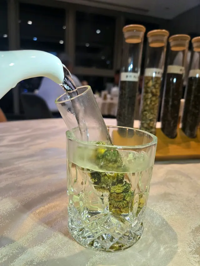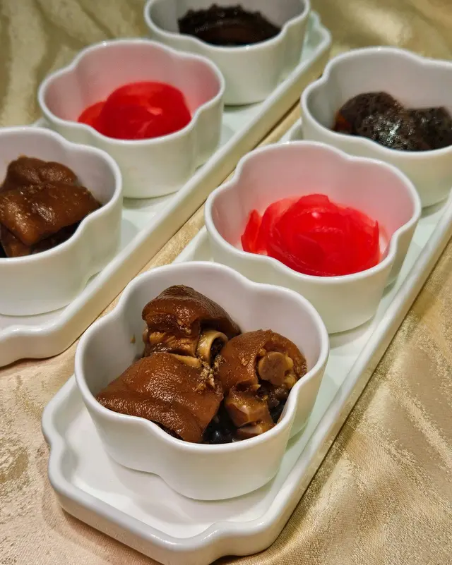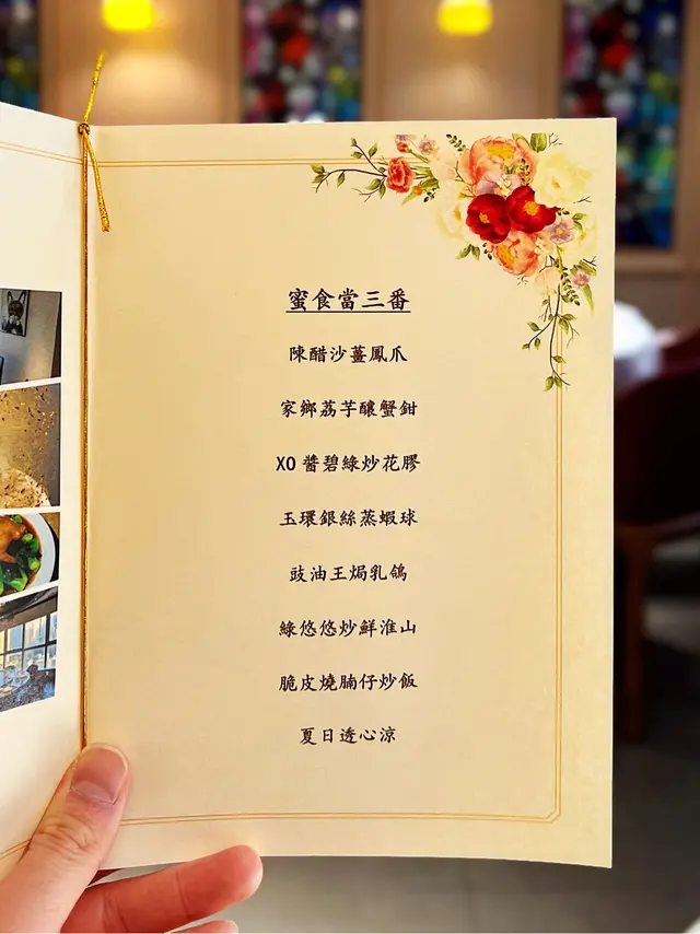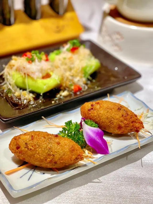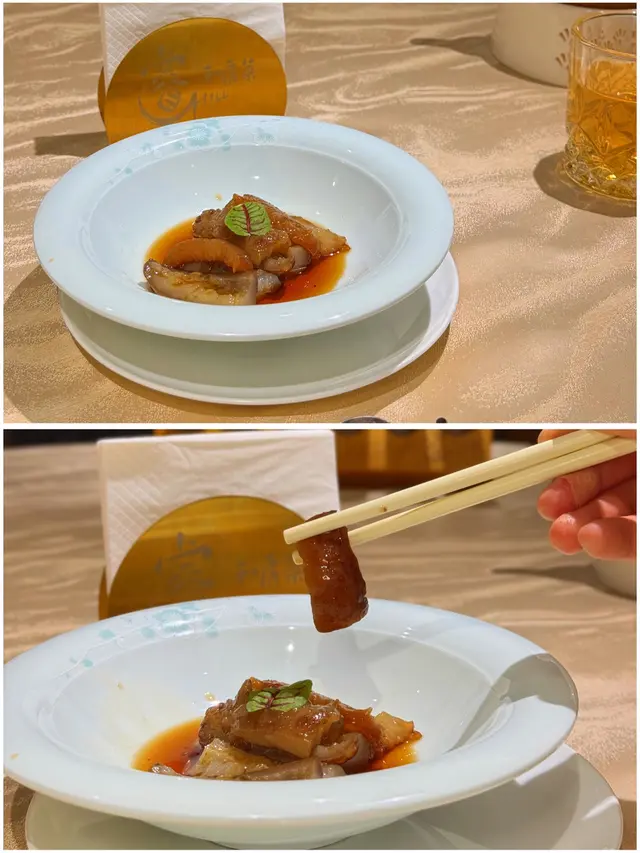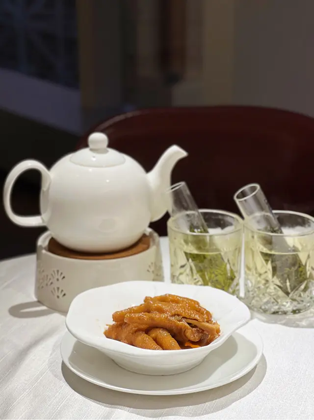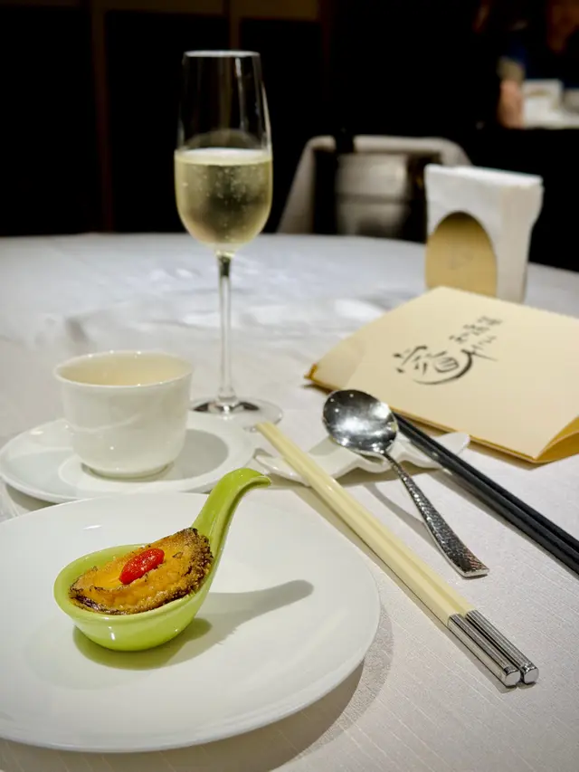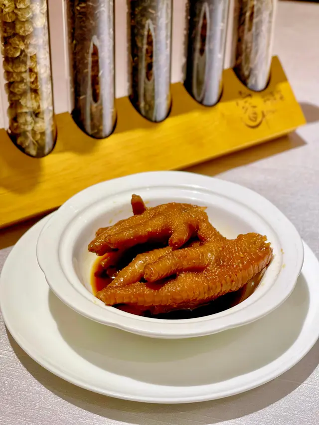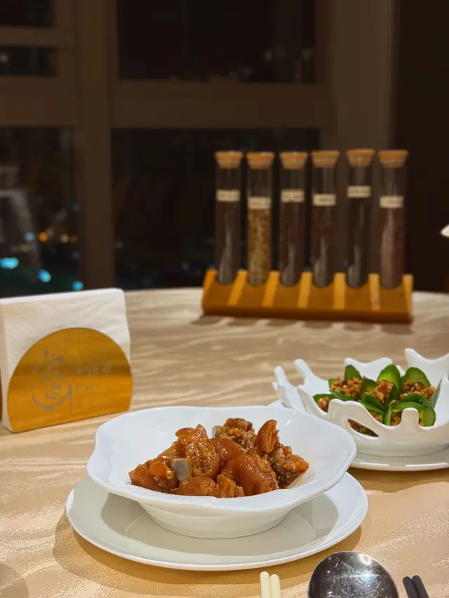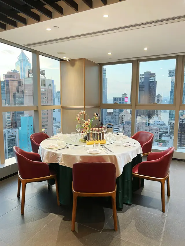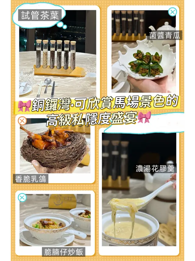 餐廳主打粵菜,融合新派風格及傳統菜式。餐廳更擁有落地玻璃窗,可俯瞰跑馬地馬場及維港美景。每位客人可選一款茶葉享用。前菜三品熱情的玫瑰 | 陳醋沙薑豬手 | 遠年花雕海刺參三款各有特式,《熱情的玫瑰》是醃漬熱情果,酸酸甜甜,非常開胃,《陳醋沙薑豬手》濃郁陳醋香氣,豬手入味彈牙,《遠年花雕海刺參》花雕酒香氣醇厚,海刺參口感嫰滑。《濃湯花膠羹》湯頭用鮮魚熬煮,非常鮮甜,加上雞肉、腐皮、陳皮及花膠絲,令口感更豐富。《黑魚子手工釀帶子》用爽滑蝦膠釀入帶子,鮮味好吃!必吃《古祖脆皮乳鴿》,乳鴿外皮超脆,肉質嫰滑非常juicy,大推!《清湯萵筍絲》萵筍絲吸引高湯精華,口感鮮嫩爽脆。《脆皮燒腩仔炒飯》的燒腩仔又香又脆,鹹香四溢,不錯。甜品記得需提前預約,餐廳更有多款招牌小菜,有機會想再試試。…查看更多