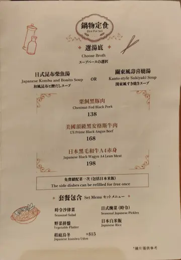 宫崎黑豚肉、日式昆布柴鱼锅定食 $138