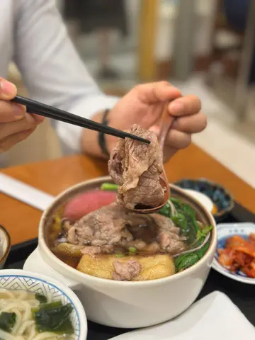 老表份锅物定食睇落都好吸引,宫崎黑豚肉大大锅,份量真不少,而且,啲豚肉好嫩口,又唔会话好肥,锅底仲有唔少洋葱、豆腐皮、野菜……等等,至于个昆布柴鱼汤味道清香